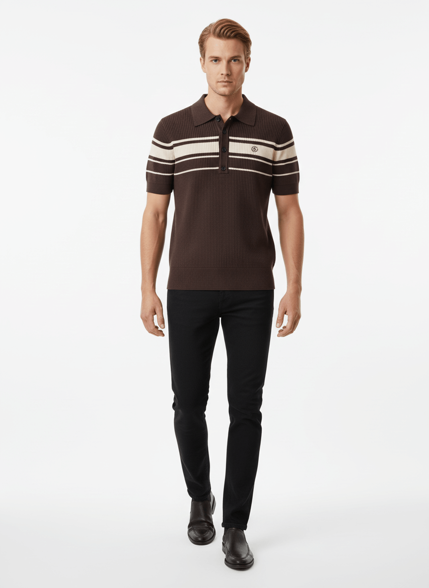 Das Grozavu Gestrickte Polo-Kragen-Oberteil ist für Männer gefertigt, die entspannte Straßenmode mit einem raffinierten, modernen Touch schätzen. Entworfen mit einem...