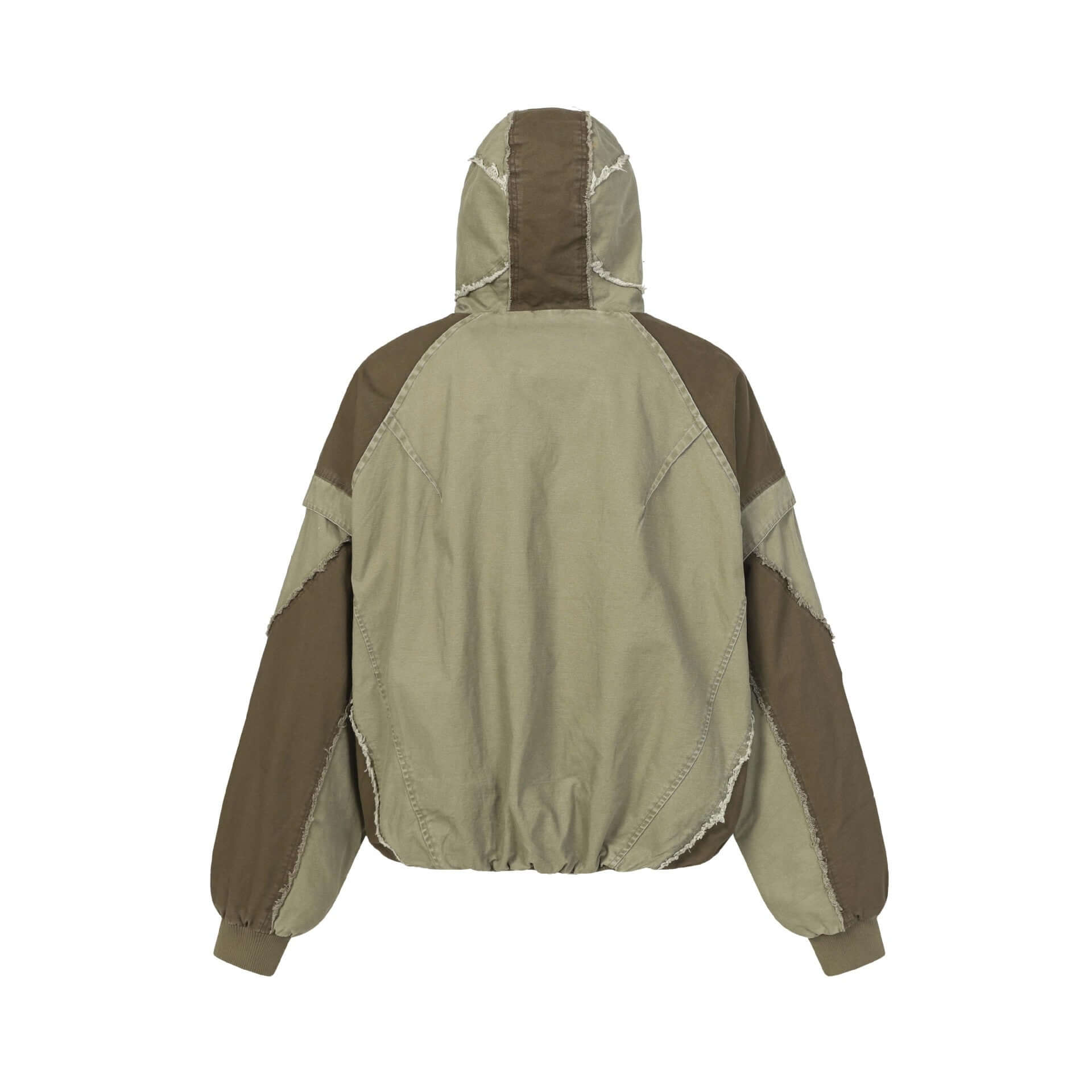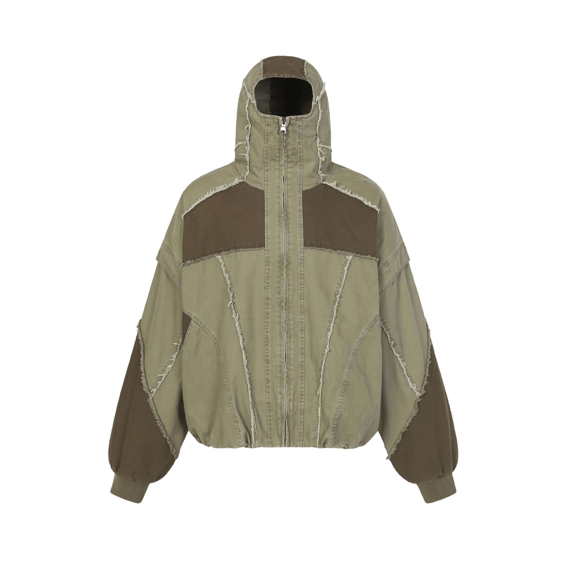 Die Grozavu Street Style Gewaschene Distressed Patchwork Farbblockierte Rohkante Kapuzenjacke vermittelt eine mutige Streetwear-Haltung mit einer entspannten Unisex-Silhouette. Entworfen mit...