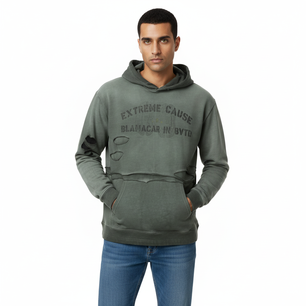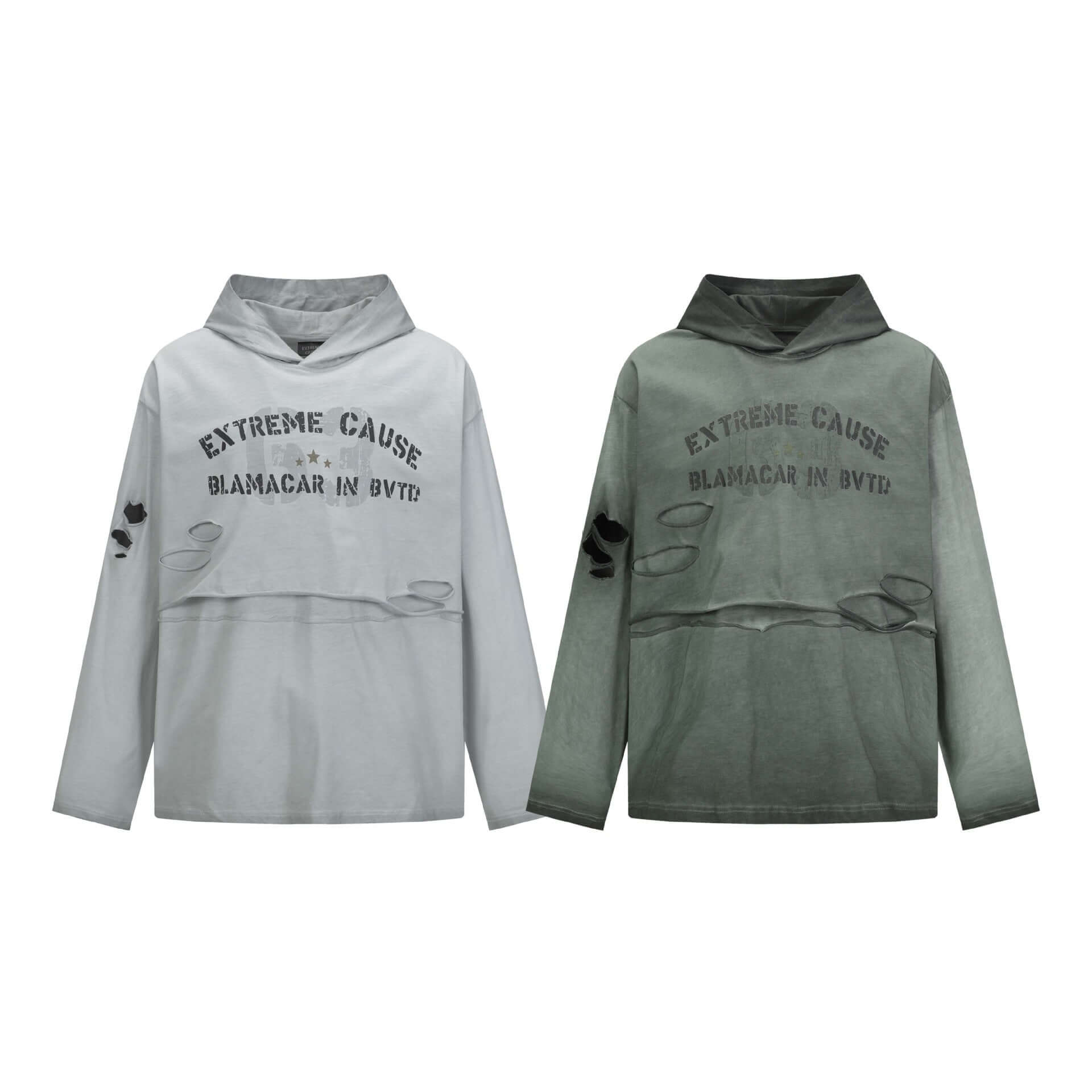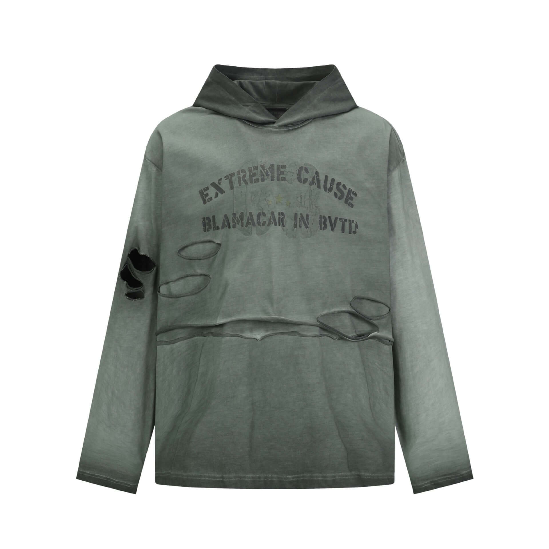 Der Grozavu Retro Washed Distressed Hole Letter Print Hoodie verbindet High-Street-Stil mit lässigem Komfort. Mit Details im Buchstabenprint, distressed Effekten...