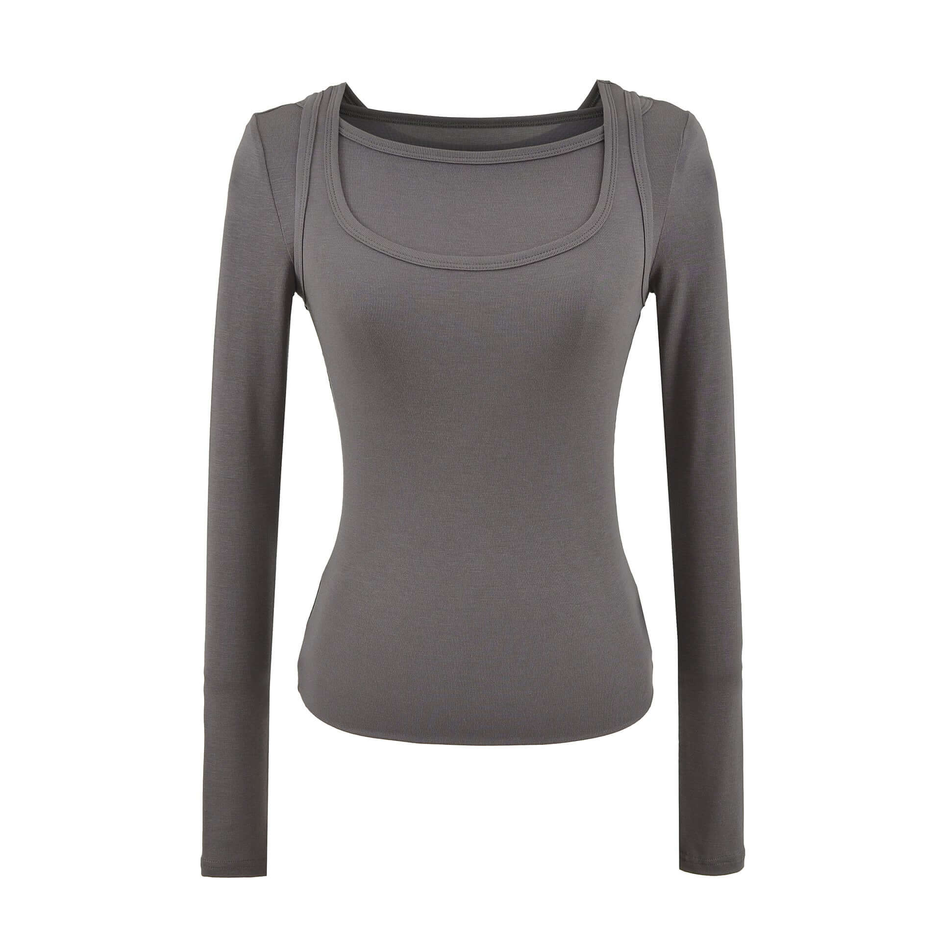 The Grozavu Slim Fit Square Neck Long Sleeve T-Shirt Top for Women delivers a sleek, body-shaping silhouette with a chic...