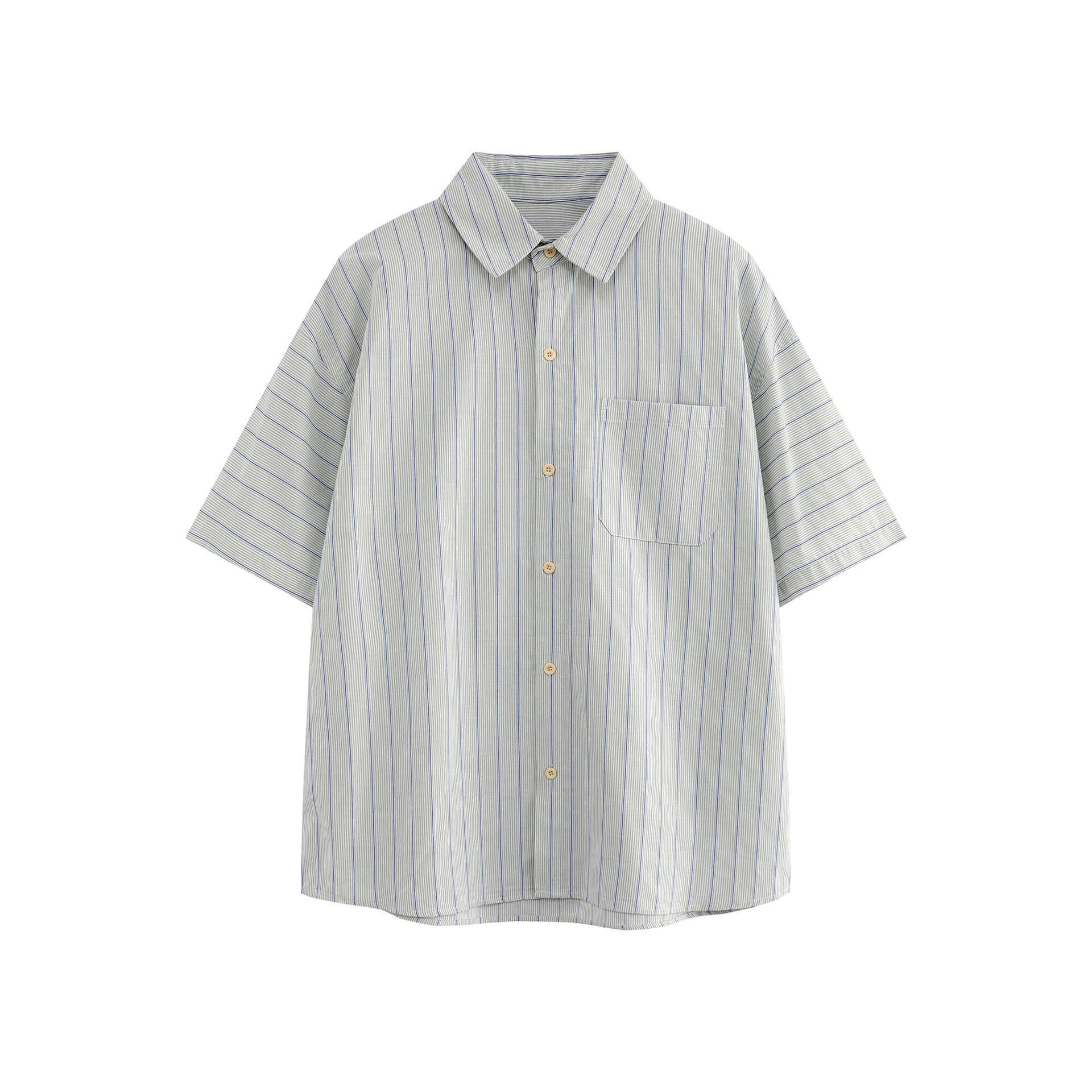 Camisa de Manga Corta a Rayas con Parche - Corte Suelto