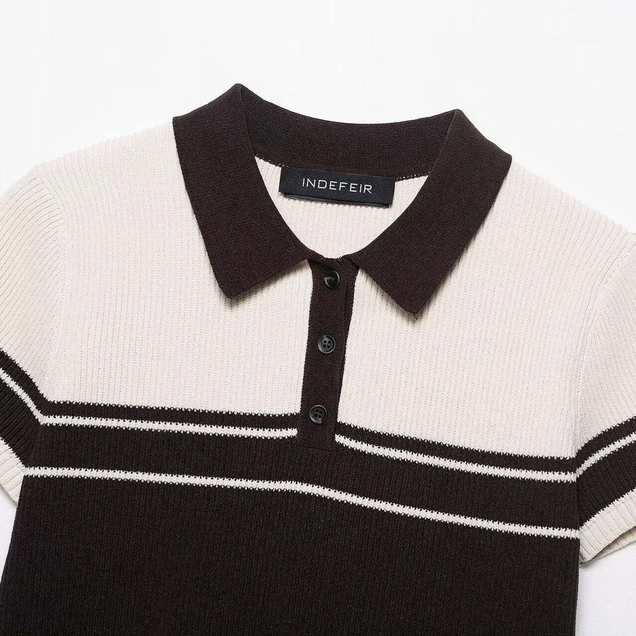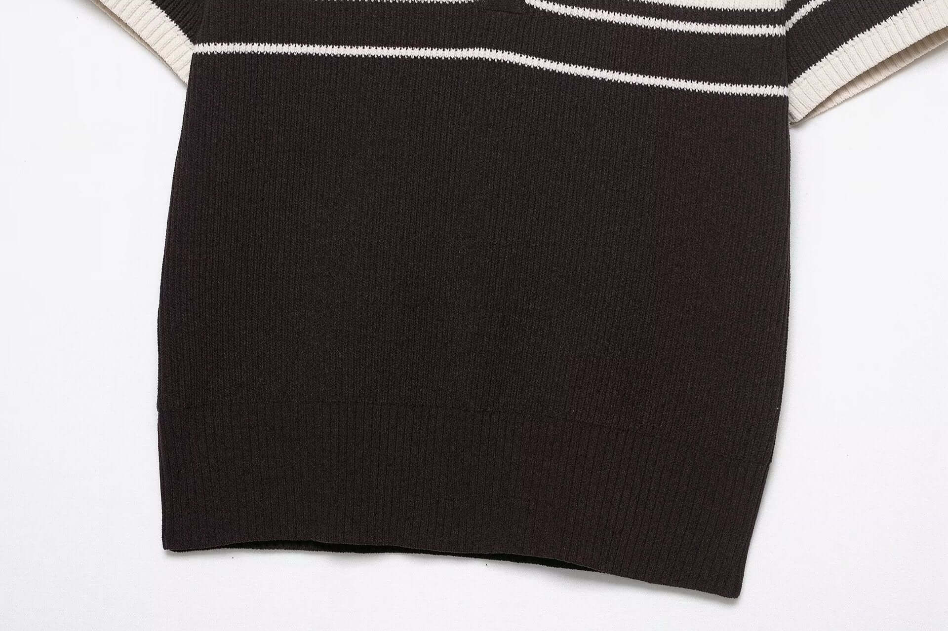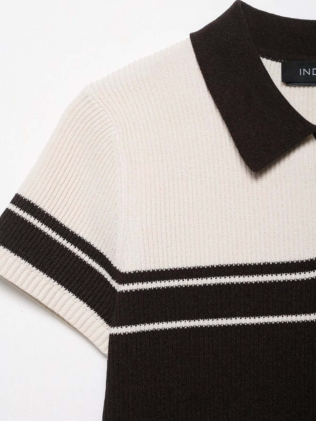 El Grozavu Ribbed Stripe Knit Polo Top está diseñado para mujeres que aman el estilo urbano europeo y americano limpio...