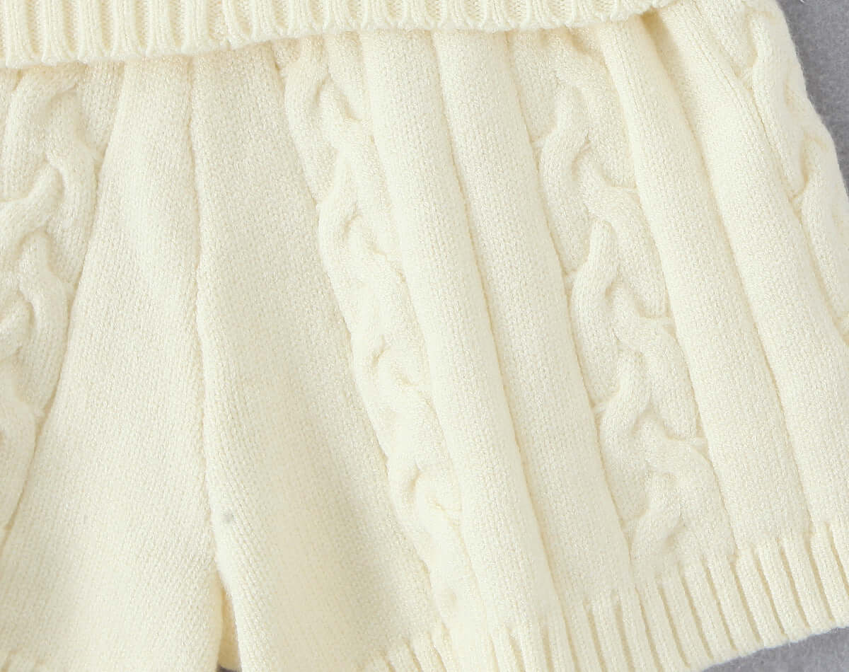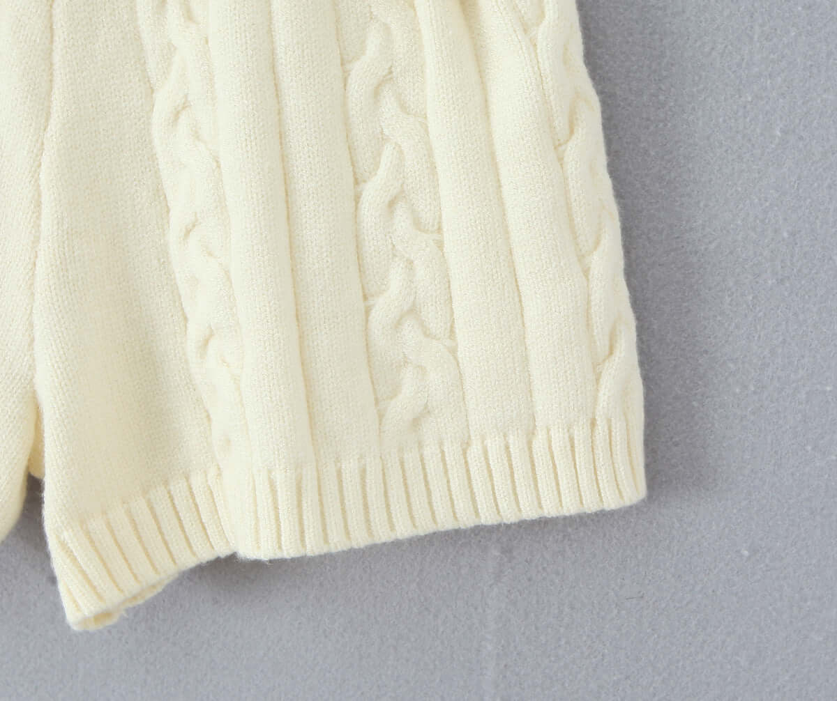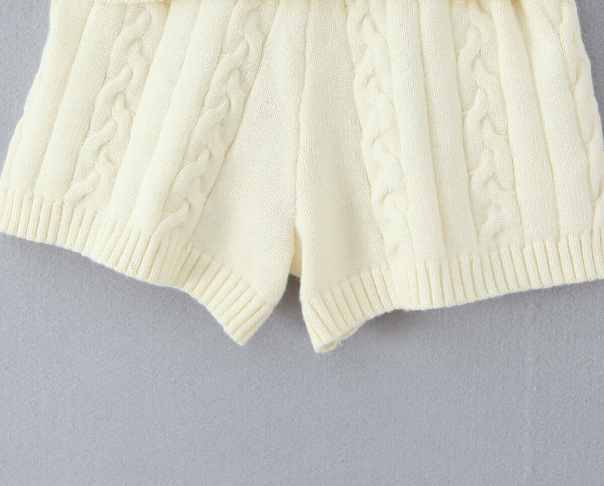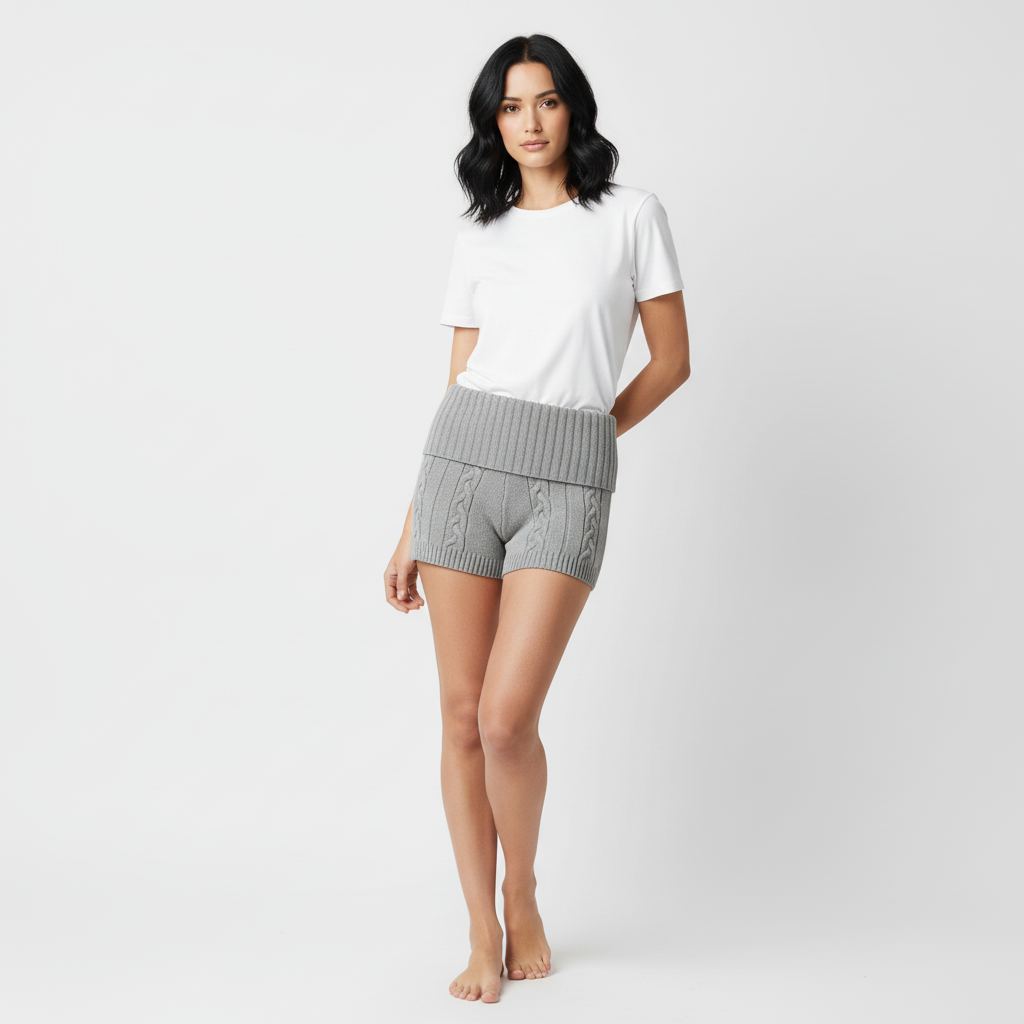 Los pantalones cortos de Lana con Giros de Masa Frita Grozavu combinan comodidad y estilo con un diseño de patrón...
