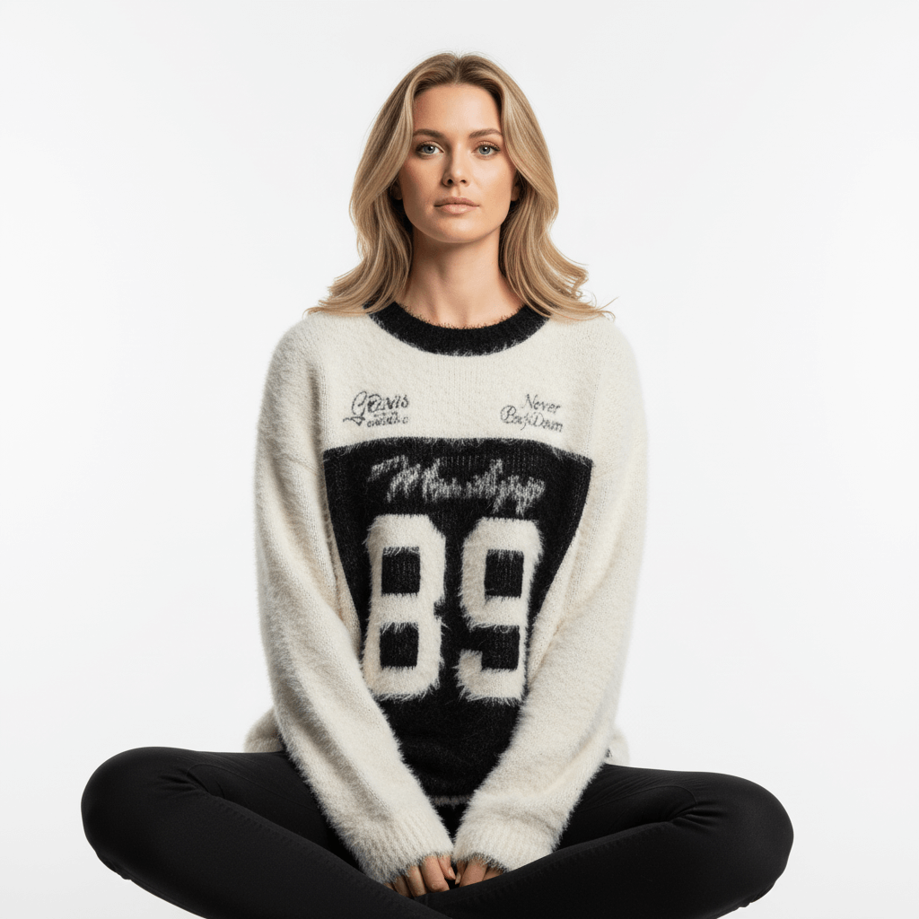 El suéter de forro polar con letras Grozavu está diseñado para mujeres que desean calidez acogedora con un estilo moderno...