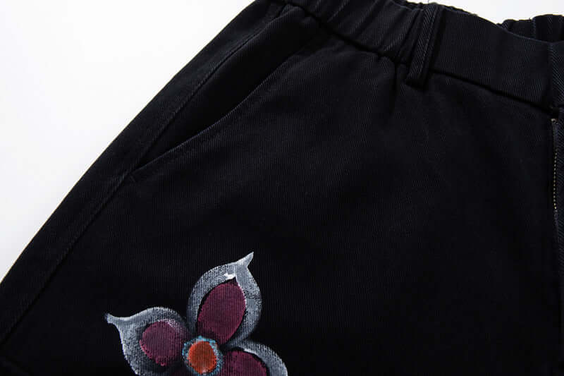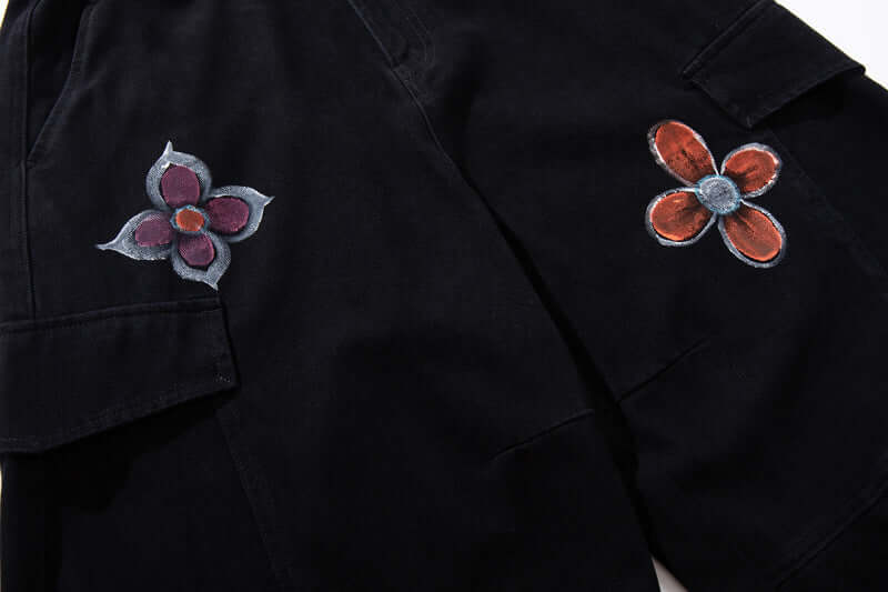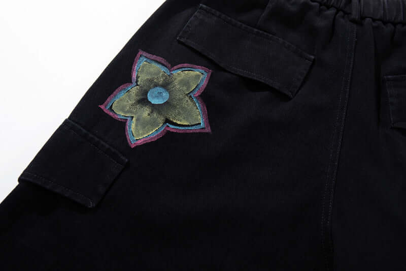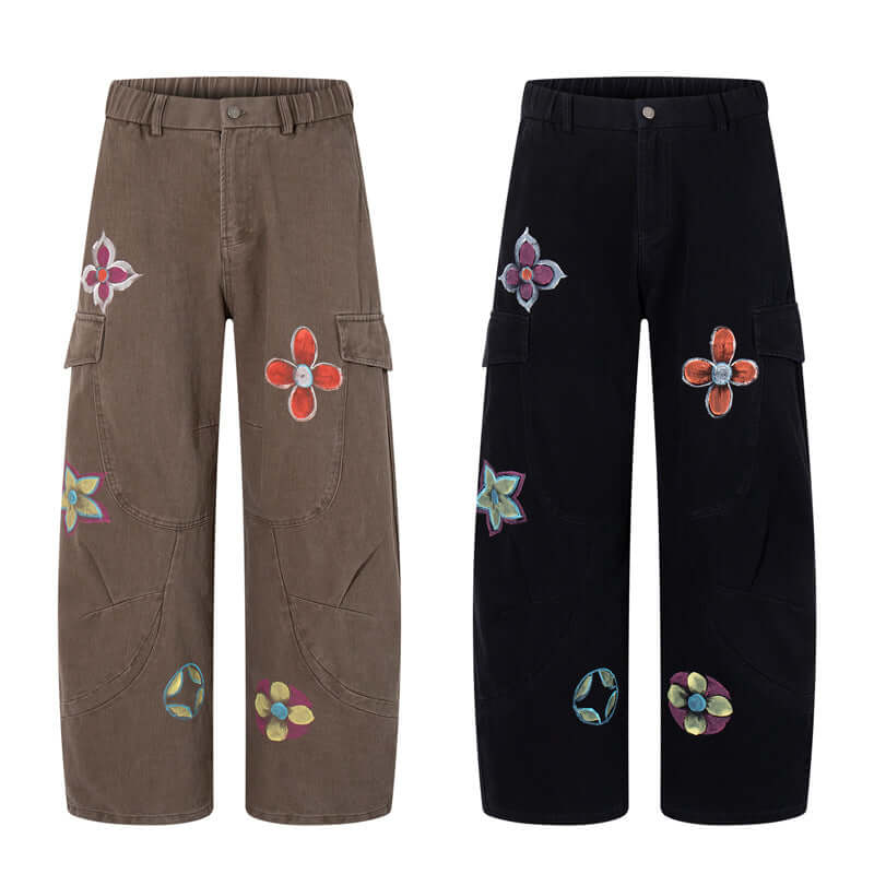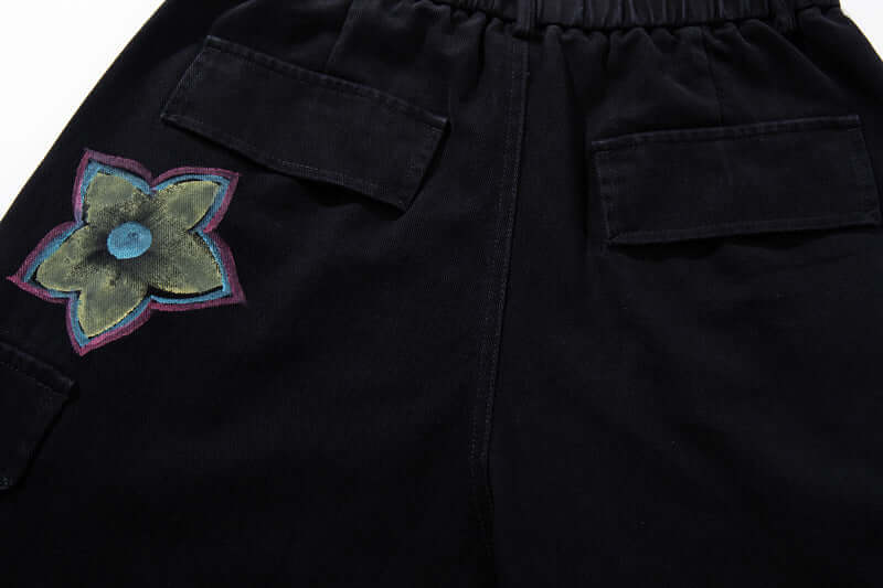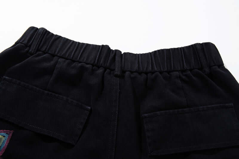 Expresa una audaz moda callejera con los Pantalones Cargo de Mezclilla Impresos con Graffiti Pintado a Mano Colorido, diseñados para...