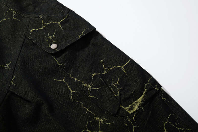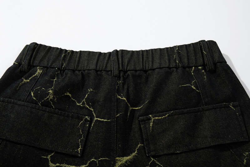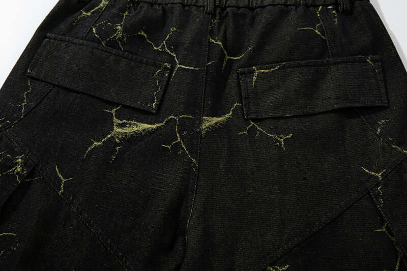 Adéntrate en la audaz moda urbana con los Pantalones Cargo de Mezclilla con Patrón de Rayos Vintage, diseñados para un...