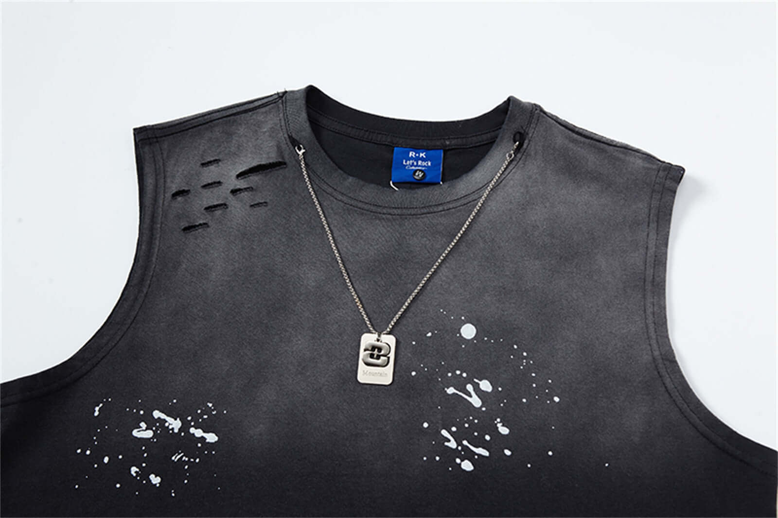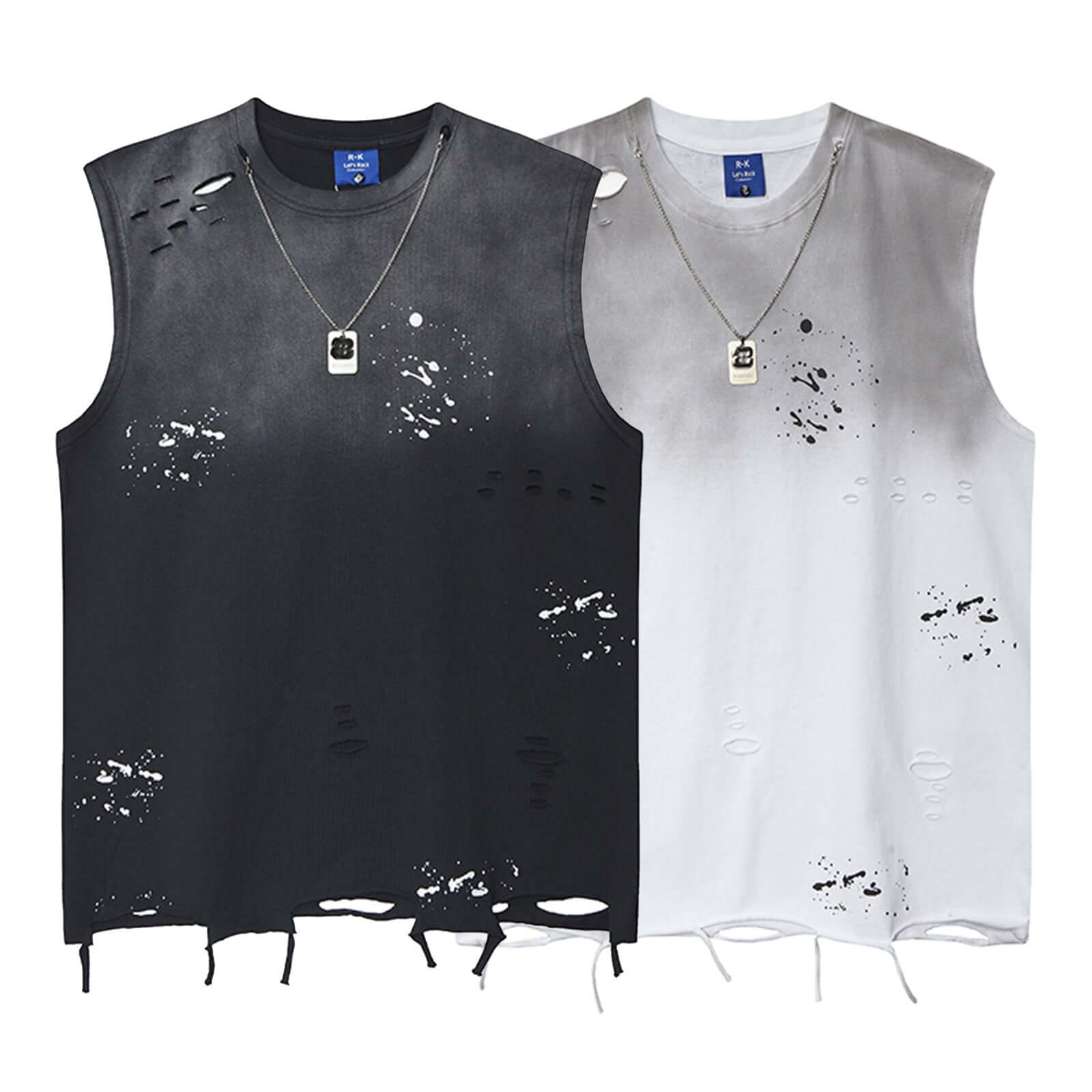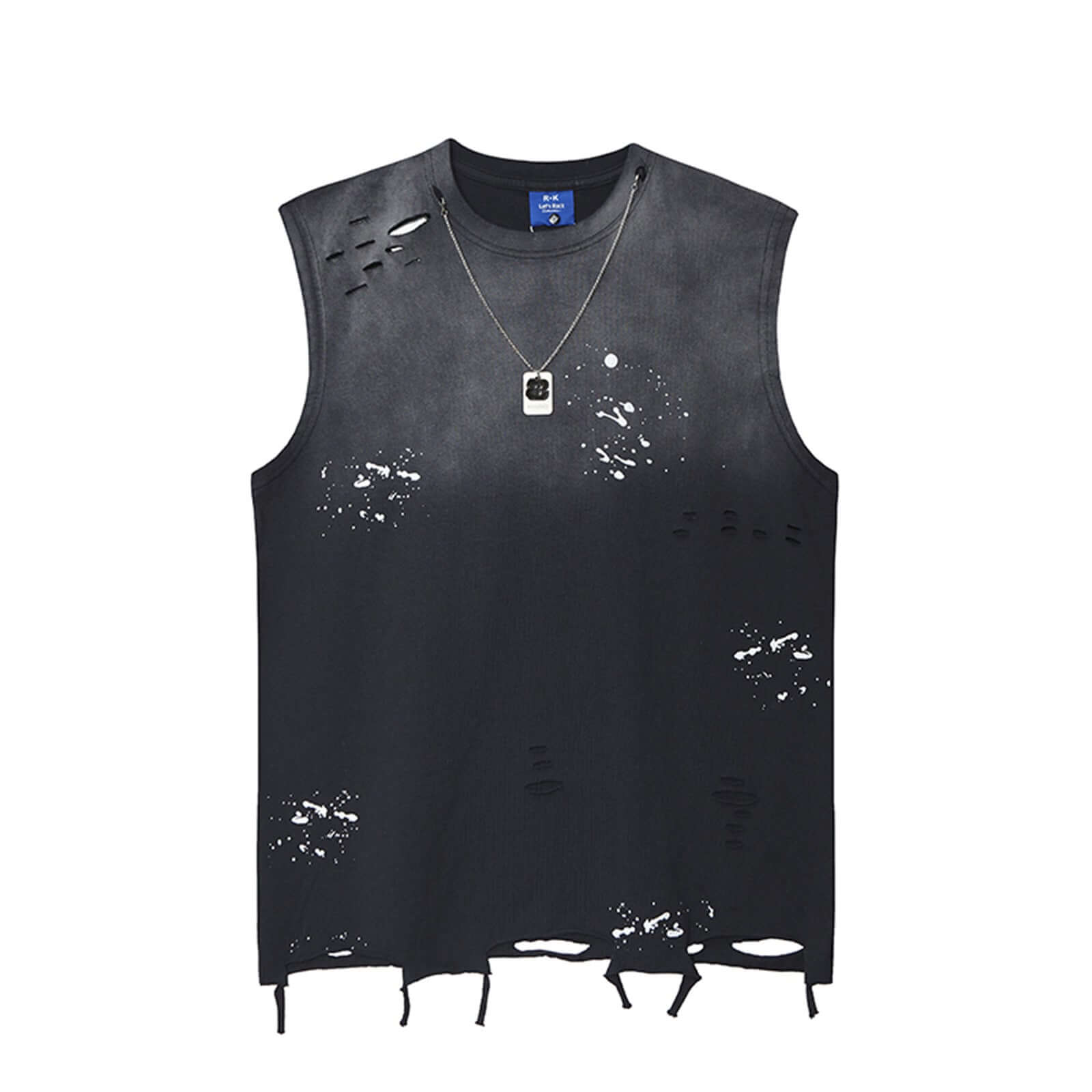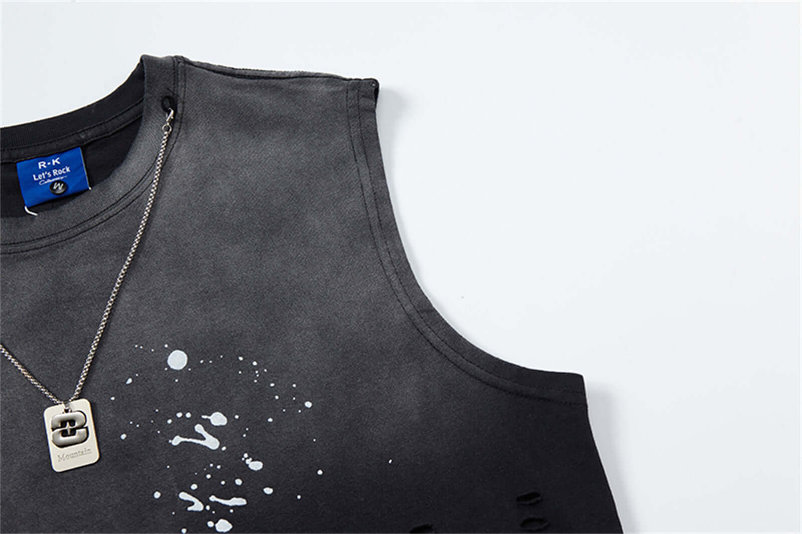 La camiseta sin mangas de tinta salpicada y lavada a agua de Grozavu ofrece una actitud audaz de hip-hop con...