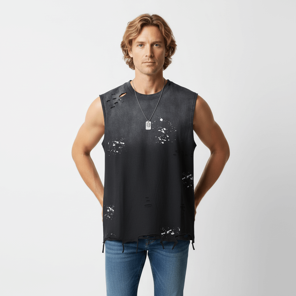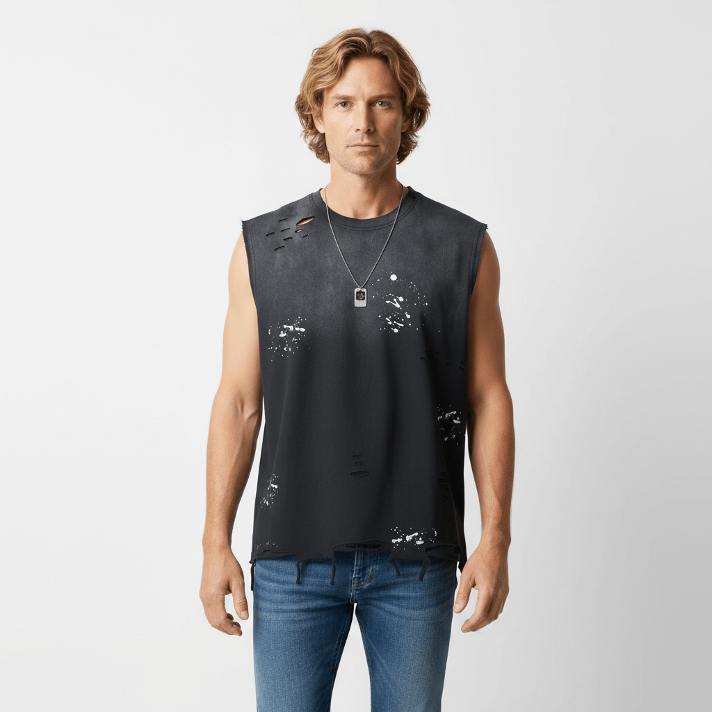 Camiseta sin mangas de tinta salpicada – Corte holgado