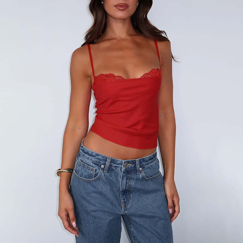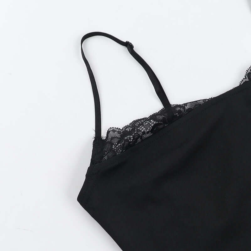 Top de tirantes de encaje patchwork – Corte ajustado