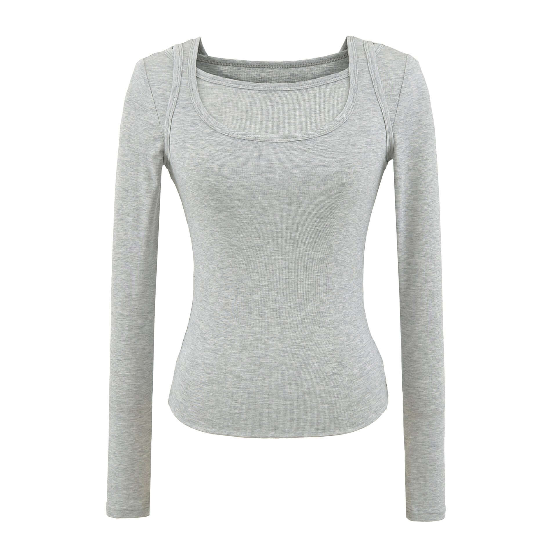 Top de manga larga ajustado con escote cuadrado