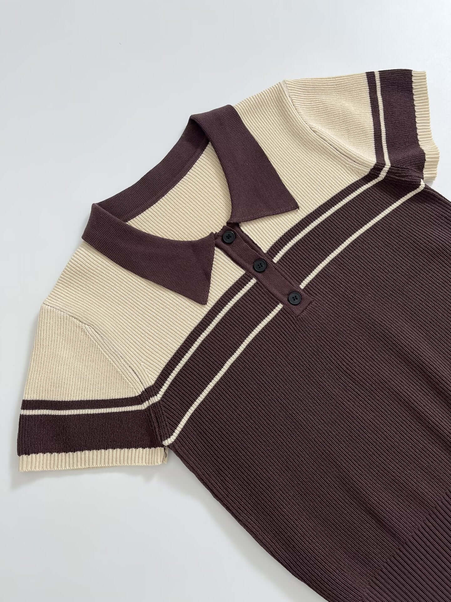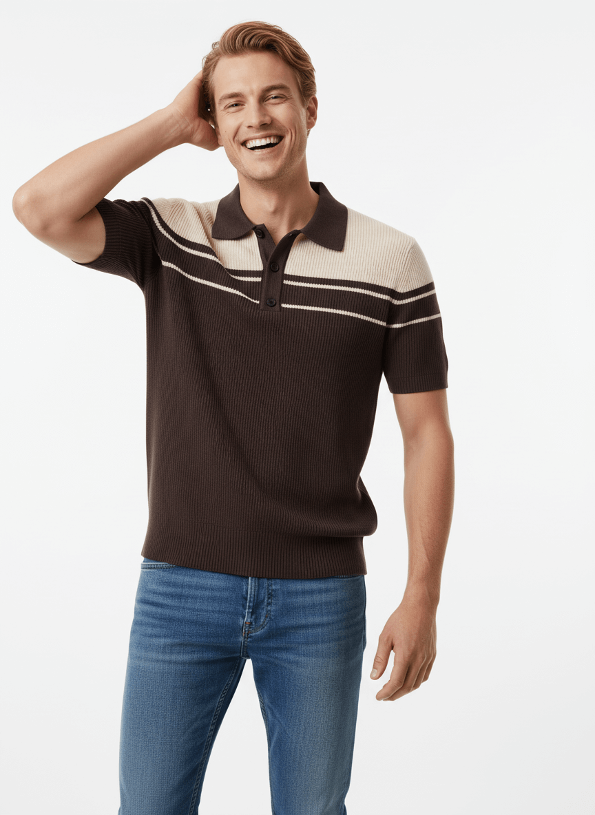 Camiseta de Cuello Polo de Punto Trenzado – Corte Suelto