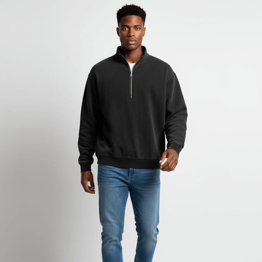 Sudadera con capucha de cremallera y cuello alzado lavado