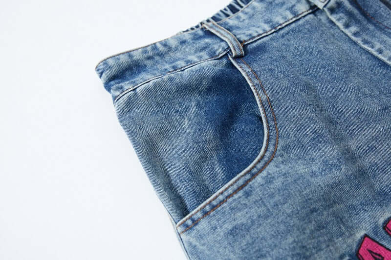 Pantalones de mezclilla universitarios con parche de dibujos animados