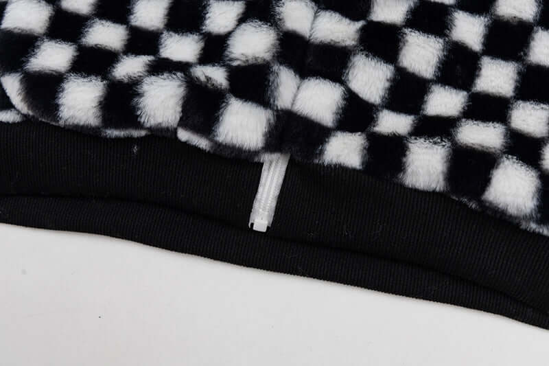 Mantente acogedora y con estilo con el Cárdigan con Capucha de Forro Polar de Parches a Cuadros y Orejas de...