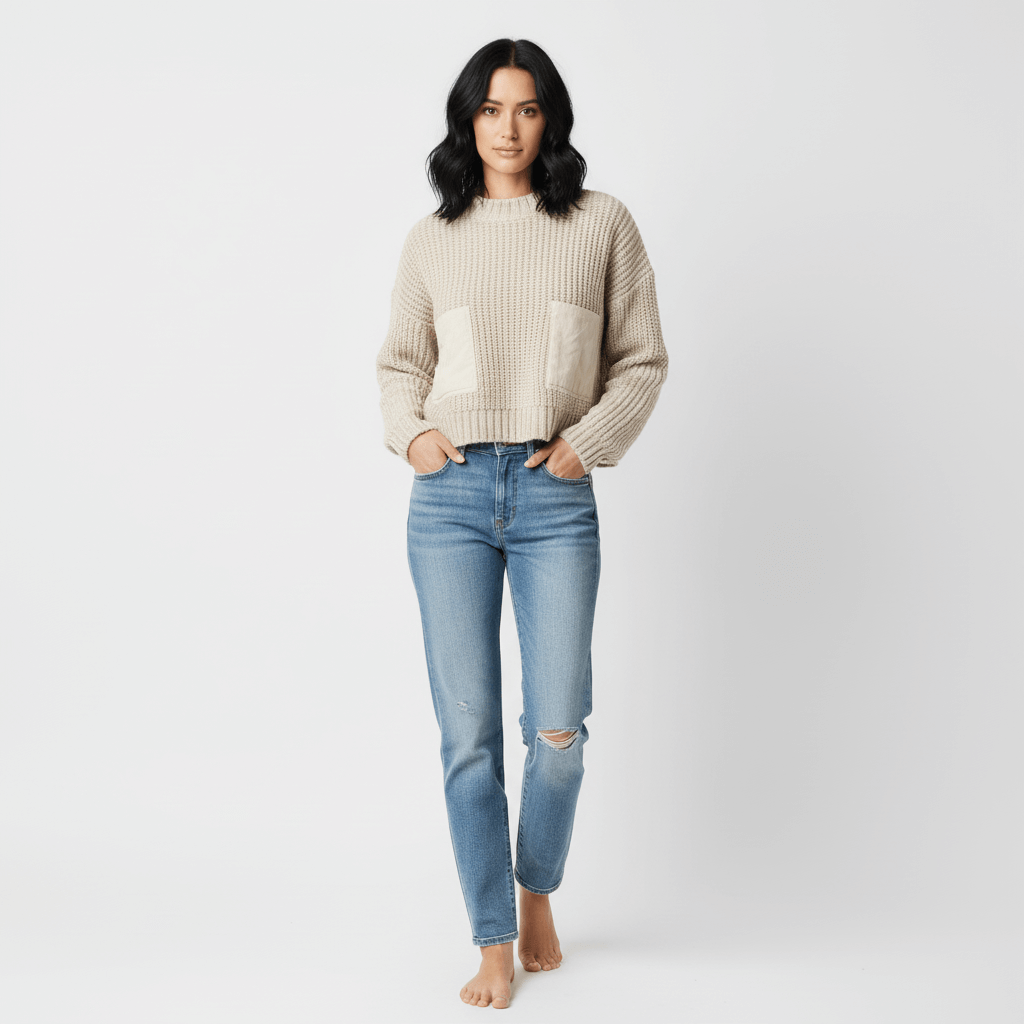 Suéter de punto recortado en contraste – Corte ajustado