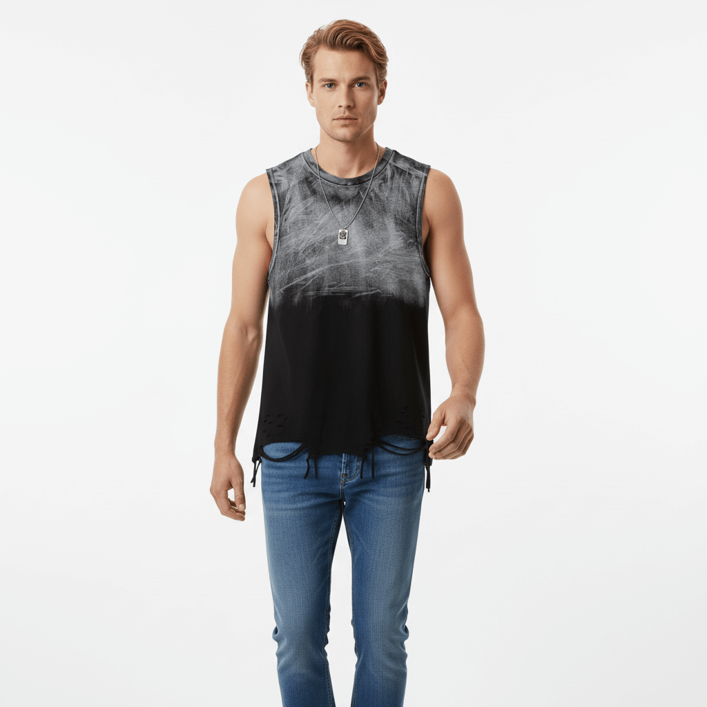 La camiseta sin mangas Grozavu Gradient Distressed Chain Strap Tank Top ofrece un audaz estilo urbano americano con un toque...