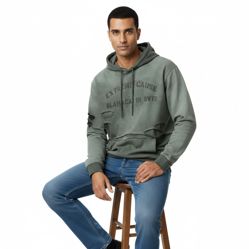 La sudadera con capucha Grozavu Retro Washed Distressed Hole Letter Print combina el estilo de alta calle con la comodidad...