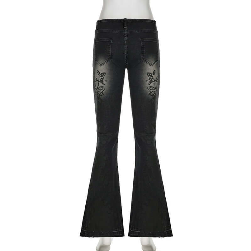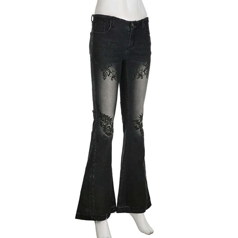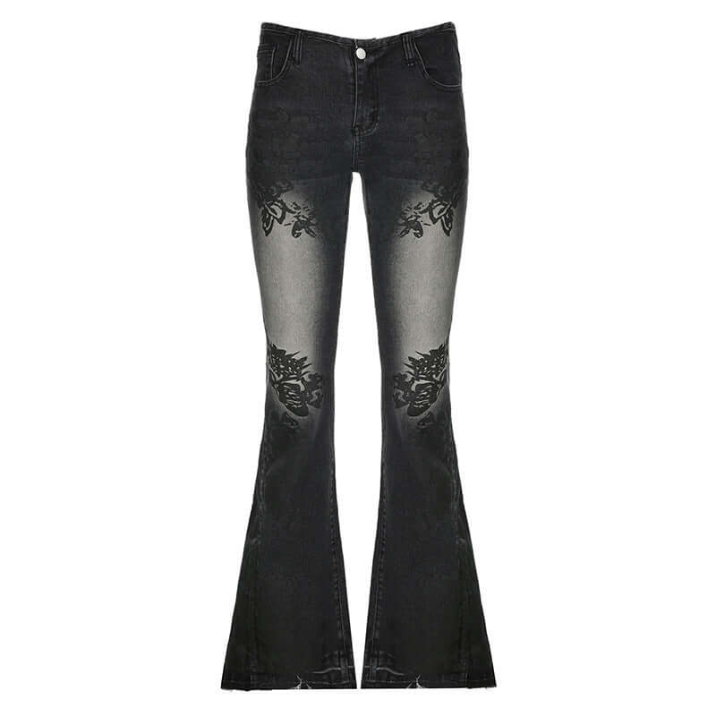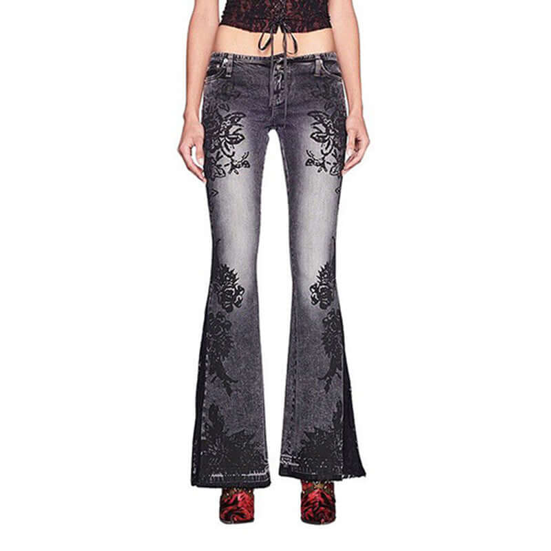 Jeans Ajustados Acampanados con Estampado de Plantas Retro