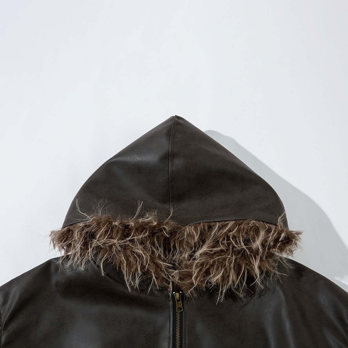 Chaqueta Piloto de PU con Cuello de Lana – Corte Suelto