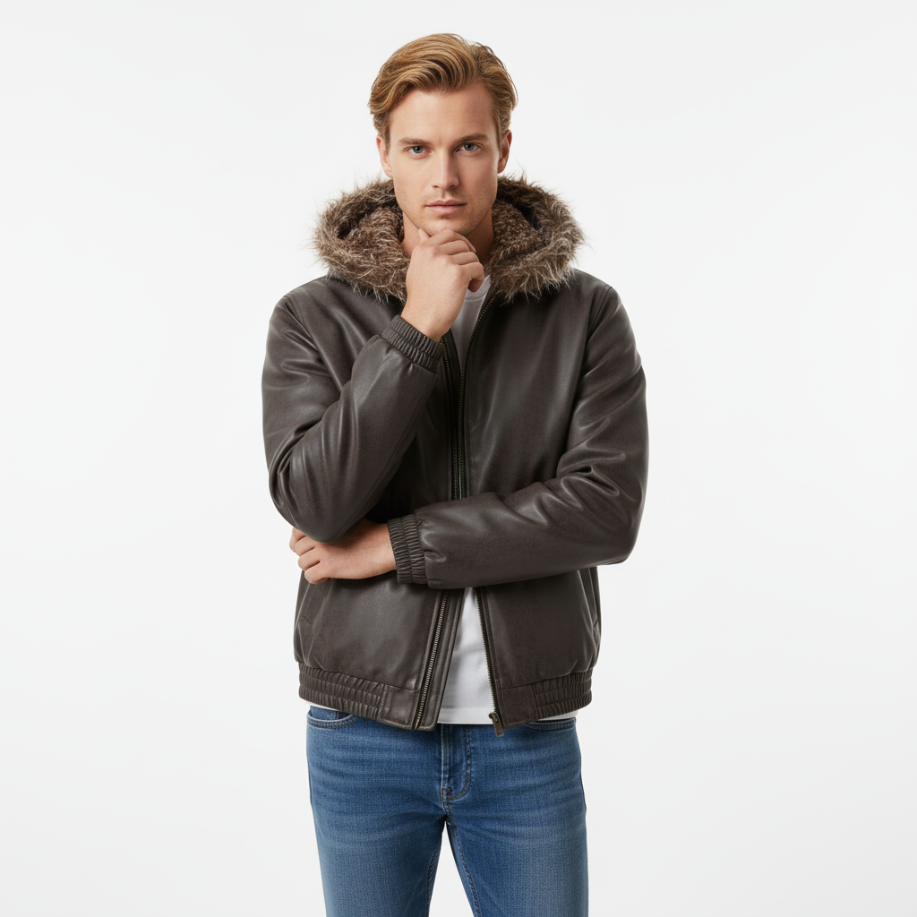 La Chaqueta de Algodón con Cuello de Lana Grozavu y Chaqueta de Cuero Piloto ofrece una audaz moda callejera de...