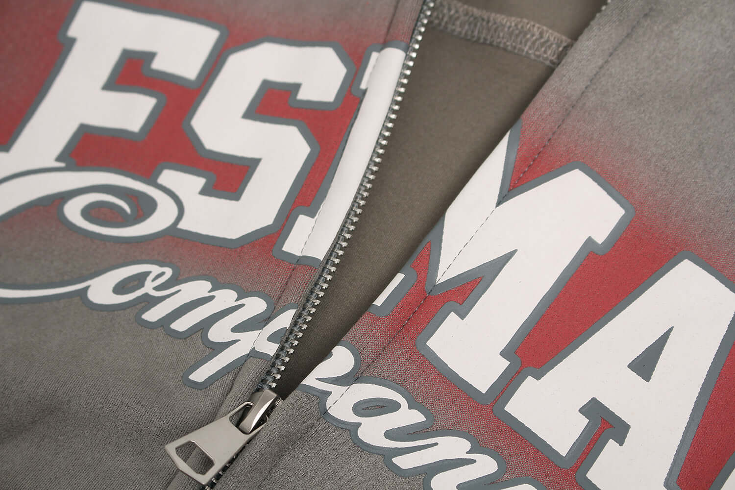 Sudadera con cremallera de impresión de ante sintético – Corte holgado