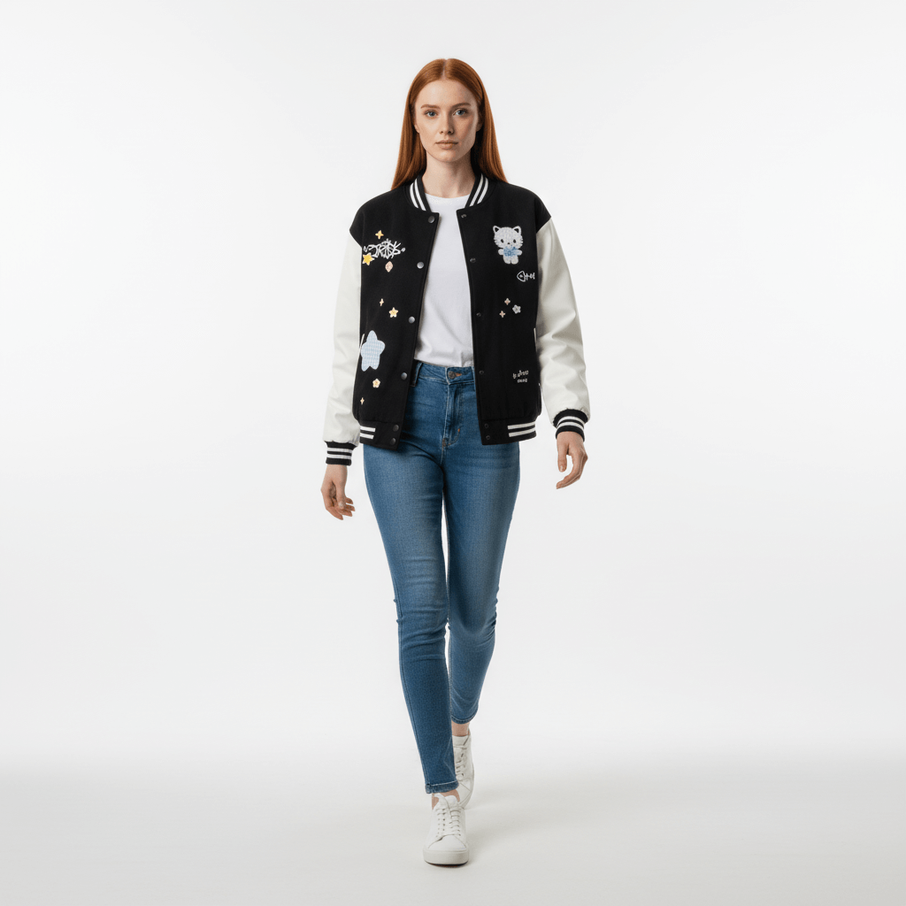 La Chaqueta de Béisbol de Gato Bonito con Bordado es una prenda de abrigo de estilo coreano a la moda,...
