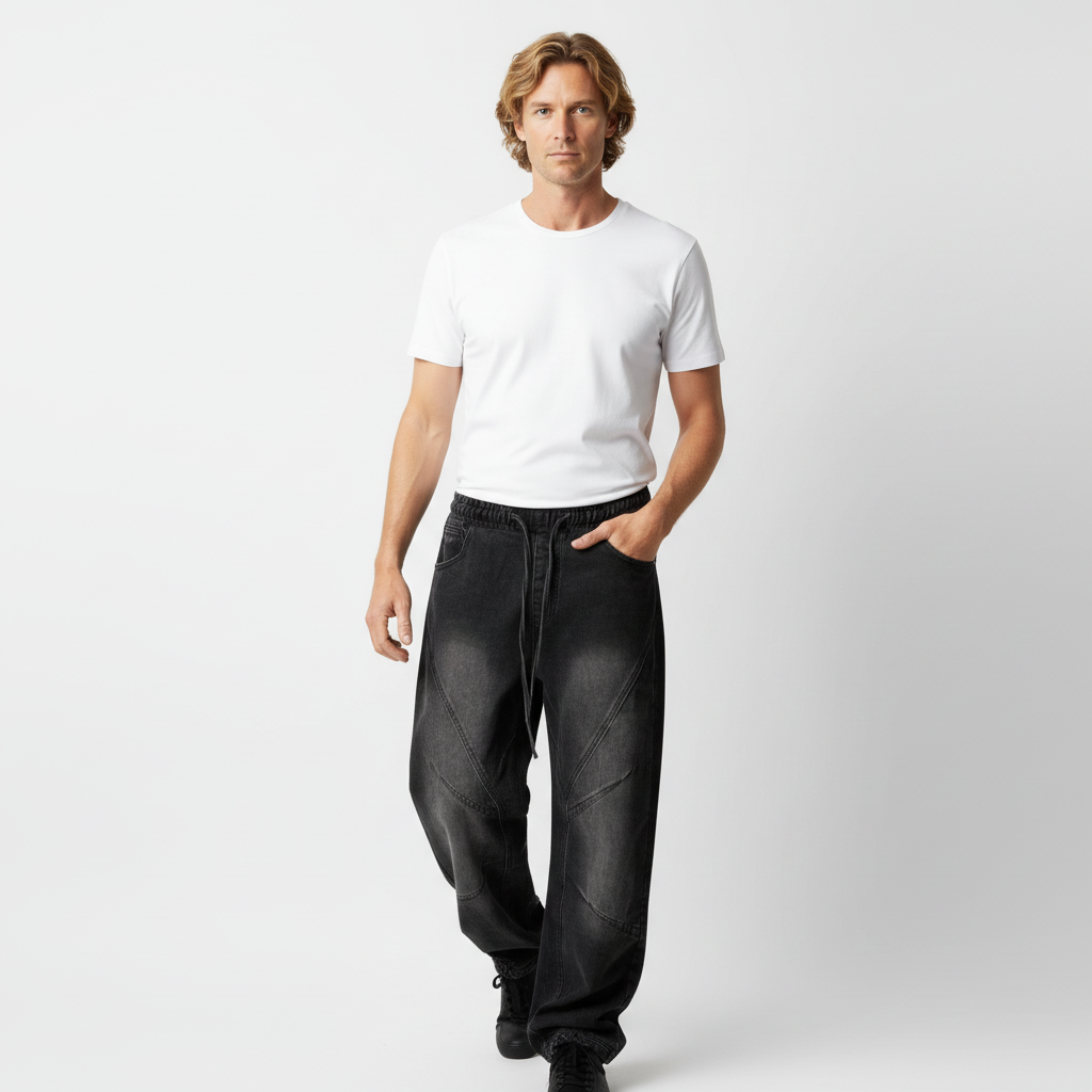 Pantalones de mezclilla reversibles con pliegues desgastados