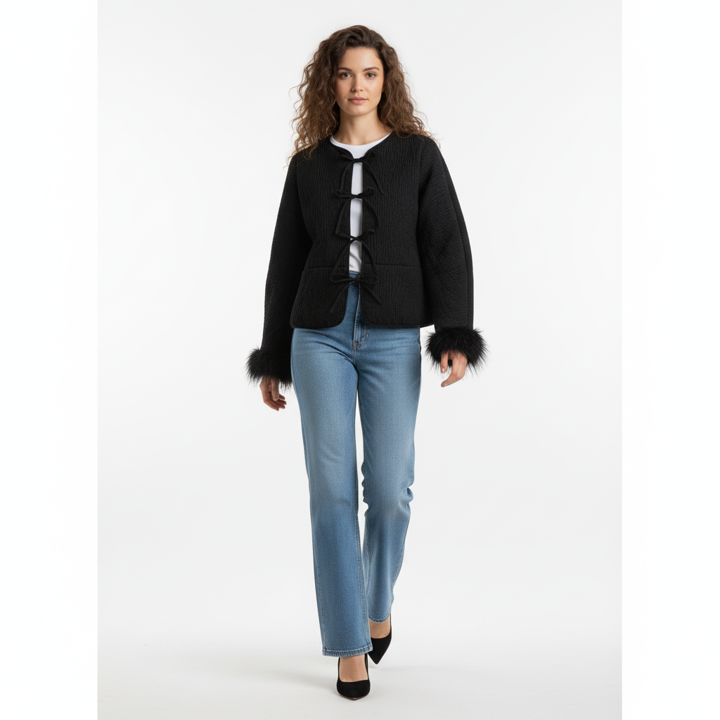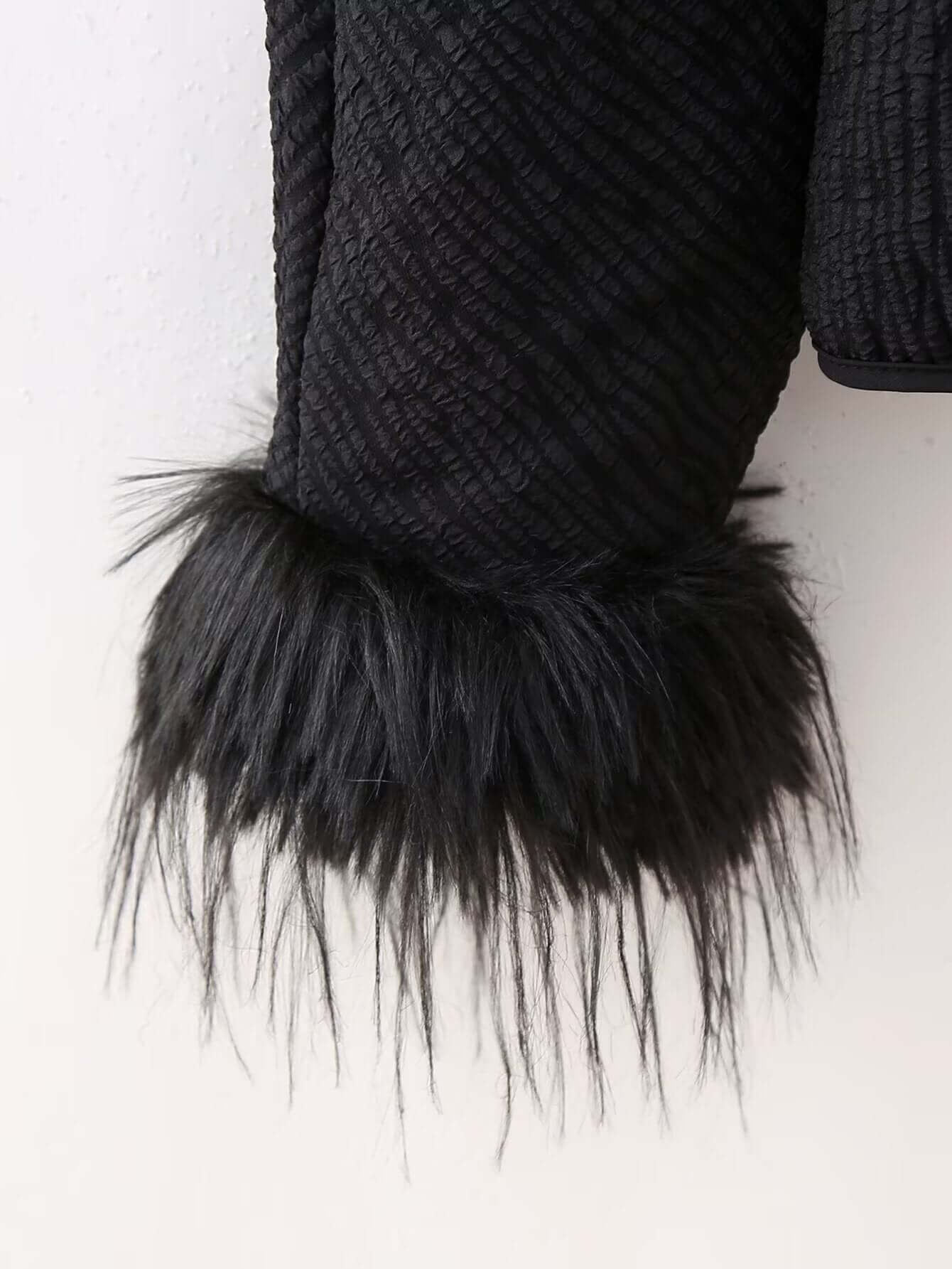 La chaqueta de mujer Grozavu con puños de piel y cierre de un solo botón ofrece una simplicidad elegante con...