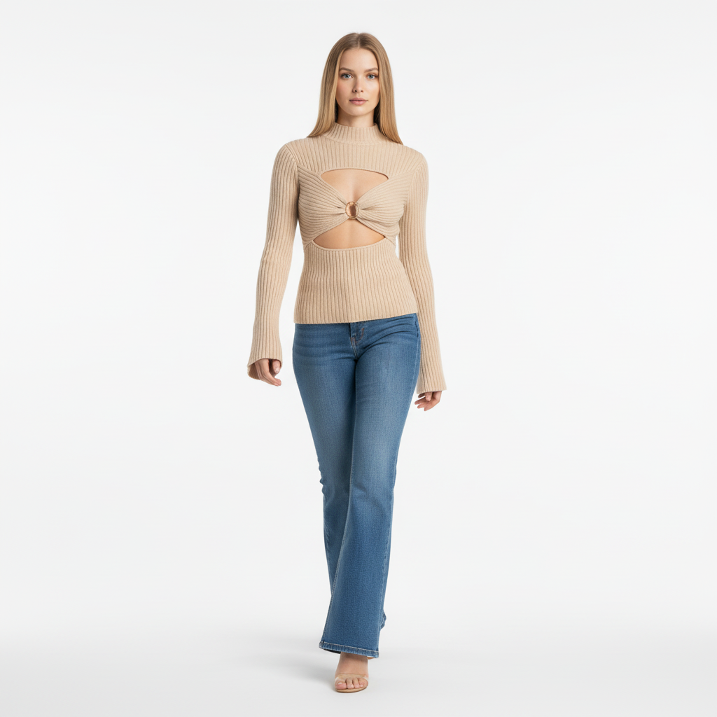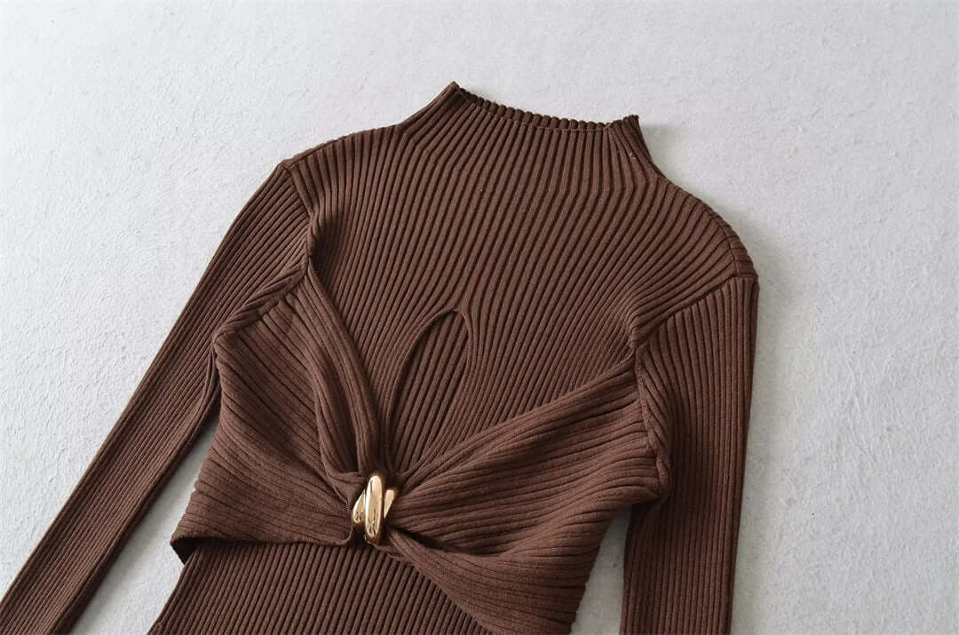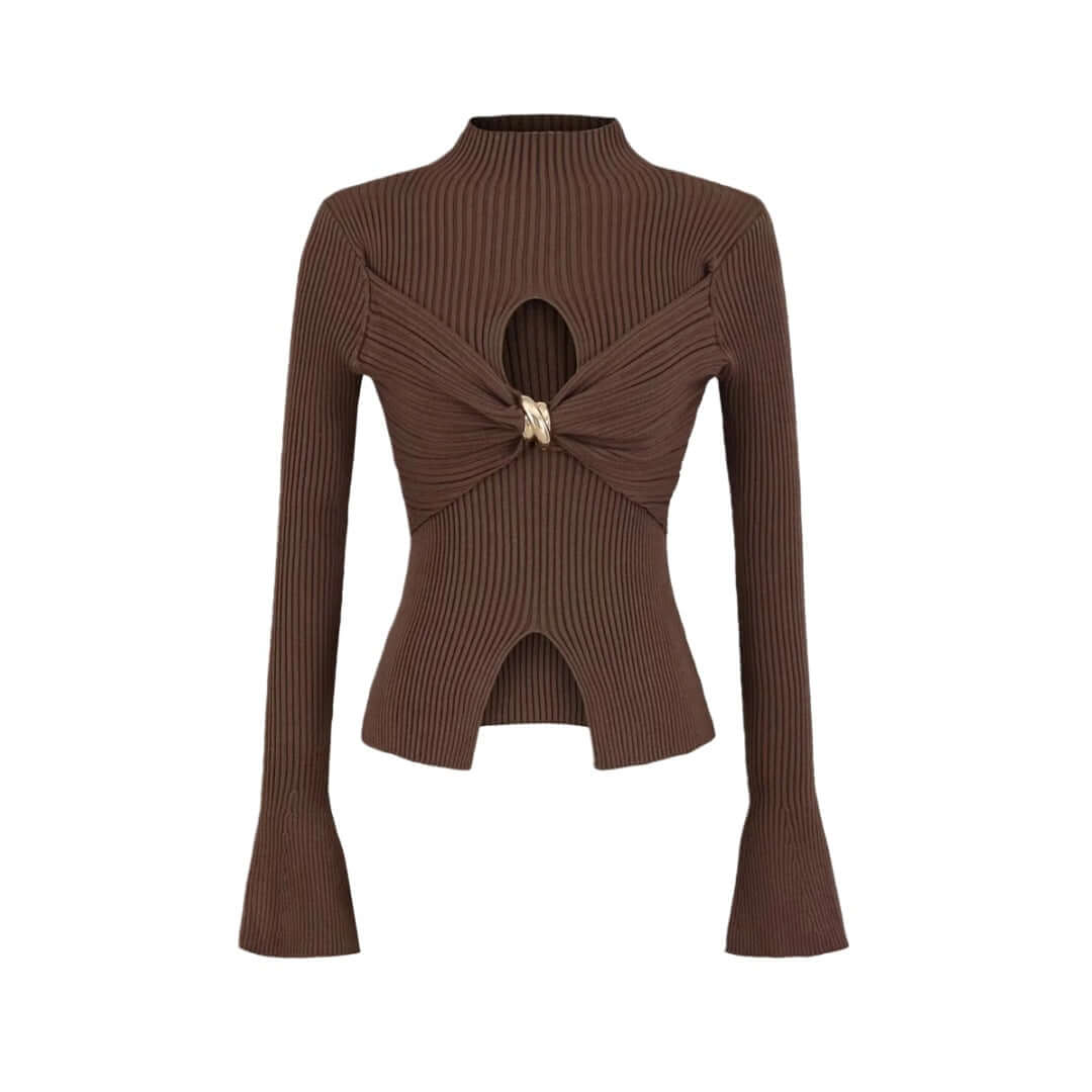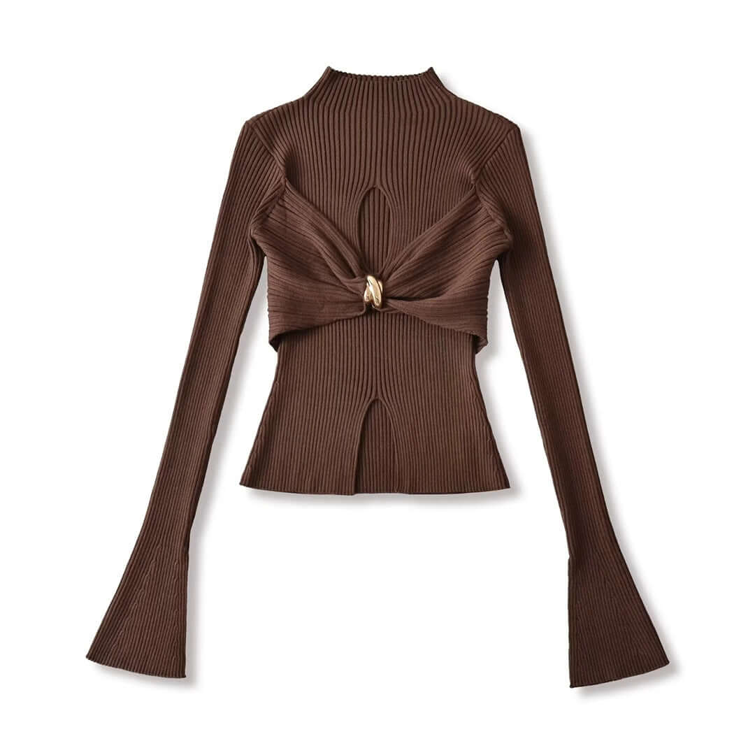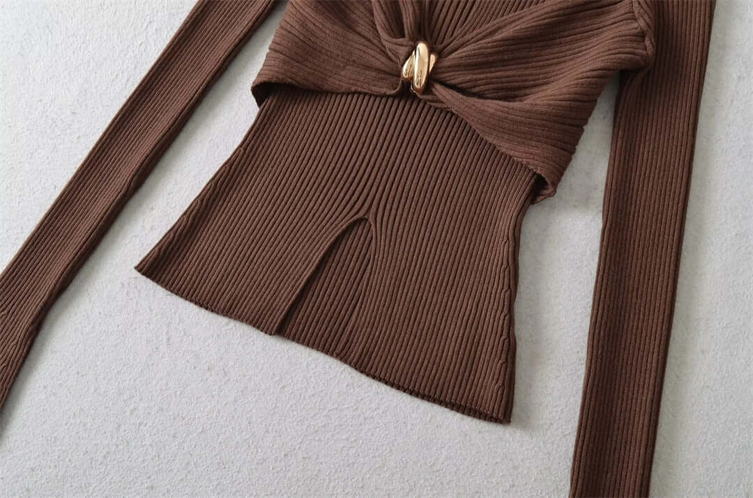 Eleva tu guardarropa con la Blusa de Punto con Mangas Acampanadas y Nudo Metálico Hueco Grozavu, una mezcla de estilo...