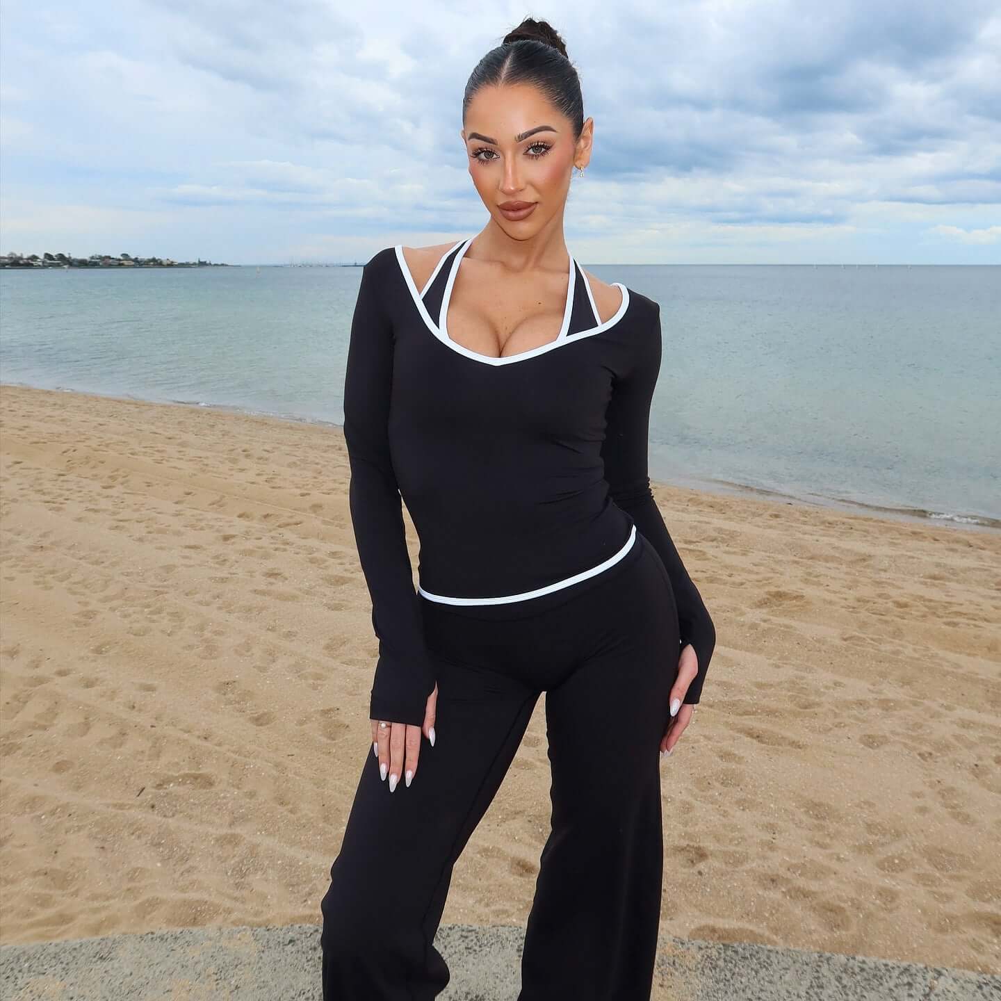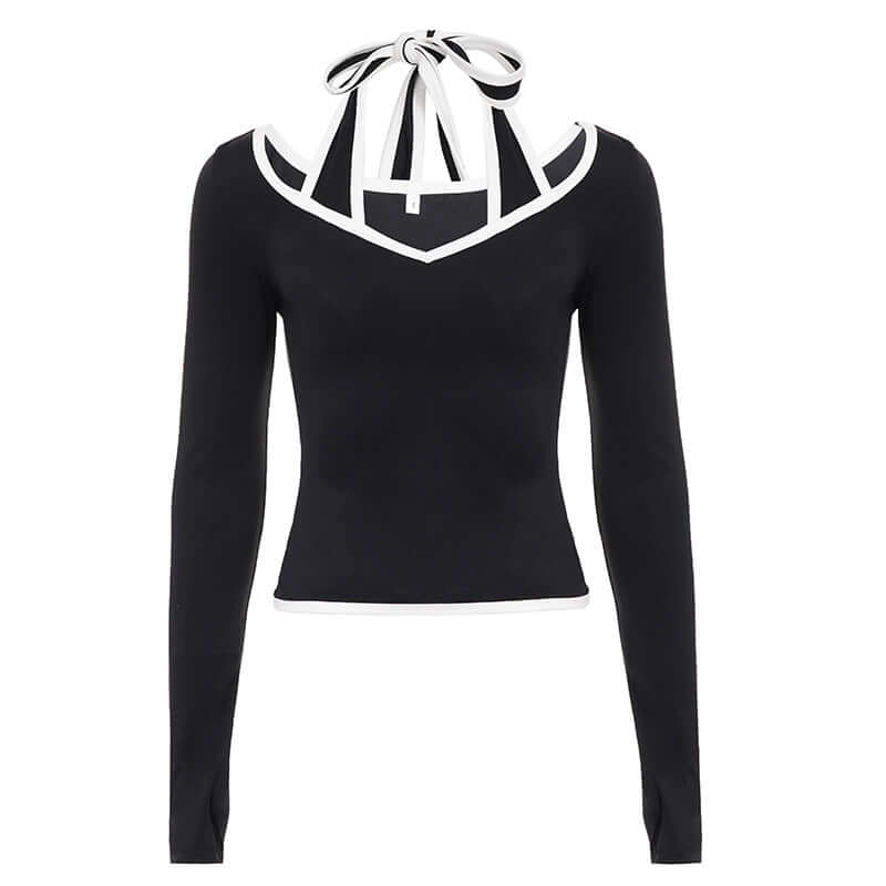 Haut à col halter à manches longues avec contraste
