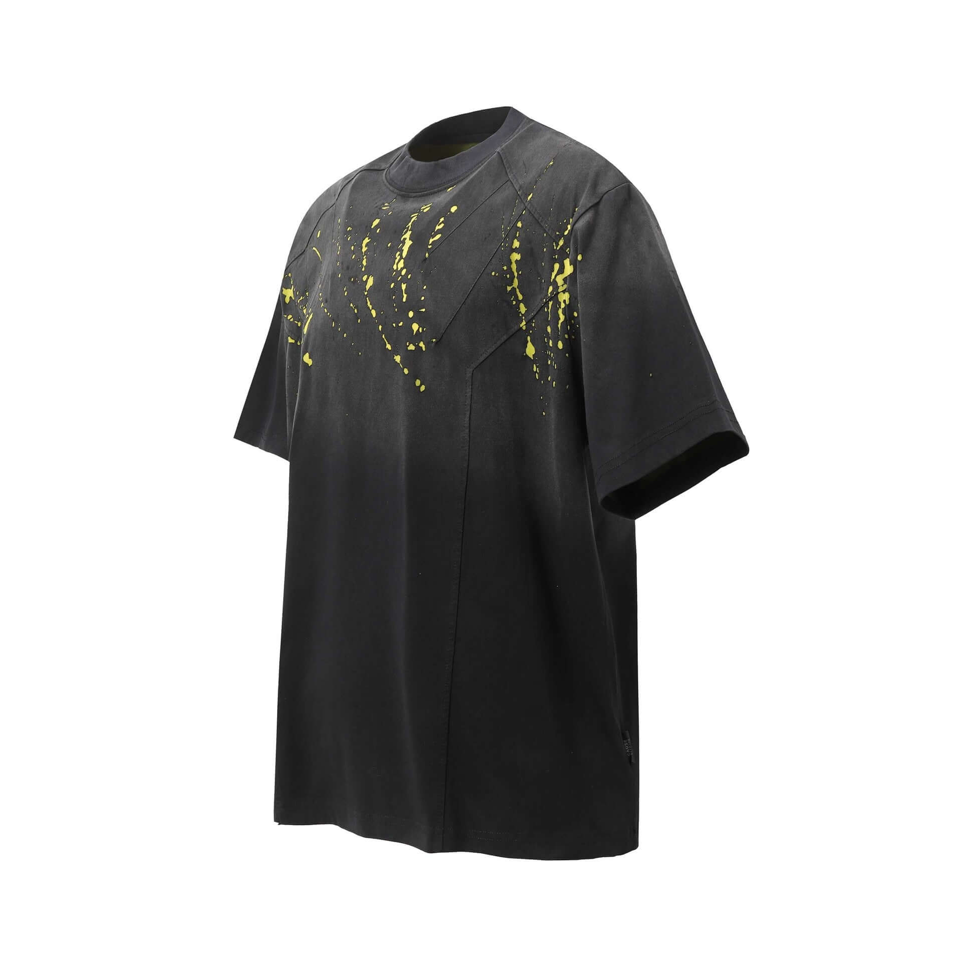 • Retro Splatter Print TShirt – Loose Fit with high-street energy and bold yellow splatter design on a black background.