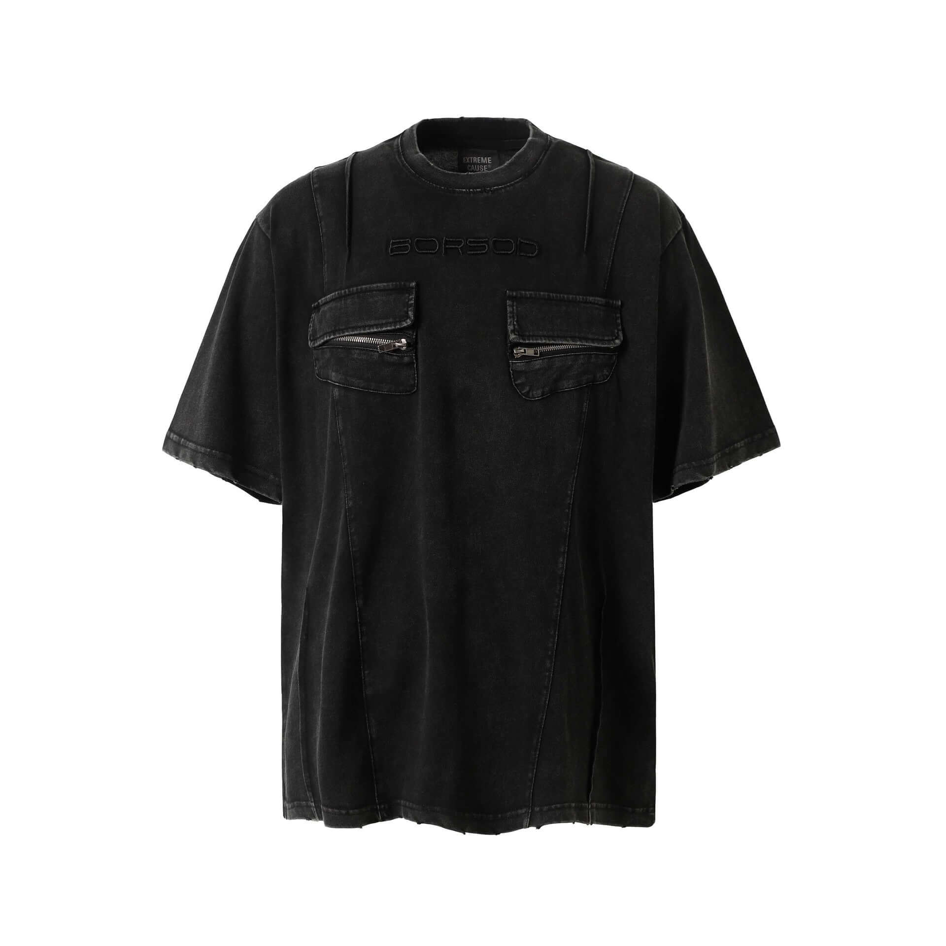 Entrez dans les rues avec confiance en portant le T-shirt à poche avec broderie de lettres délavé de Grozavu, un...