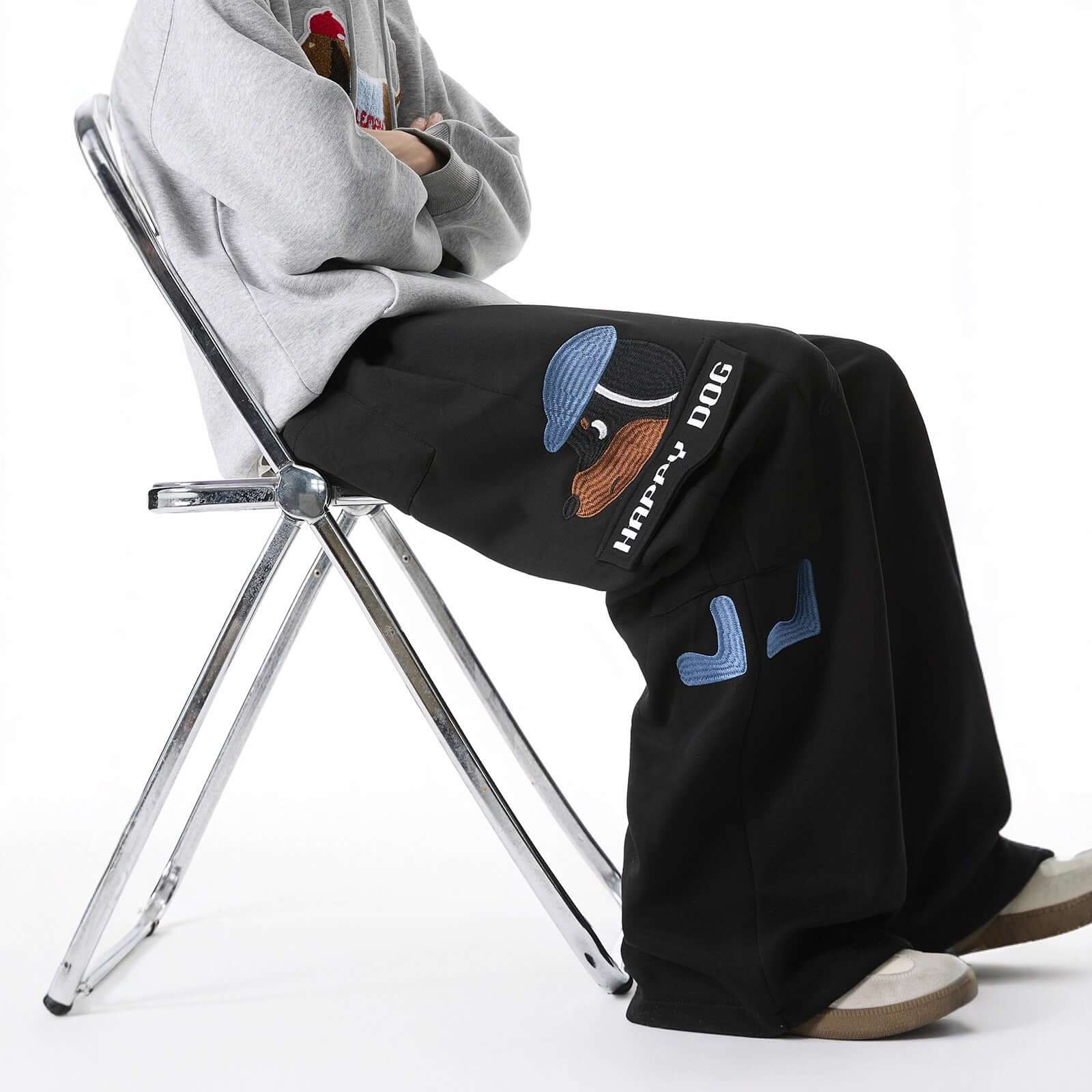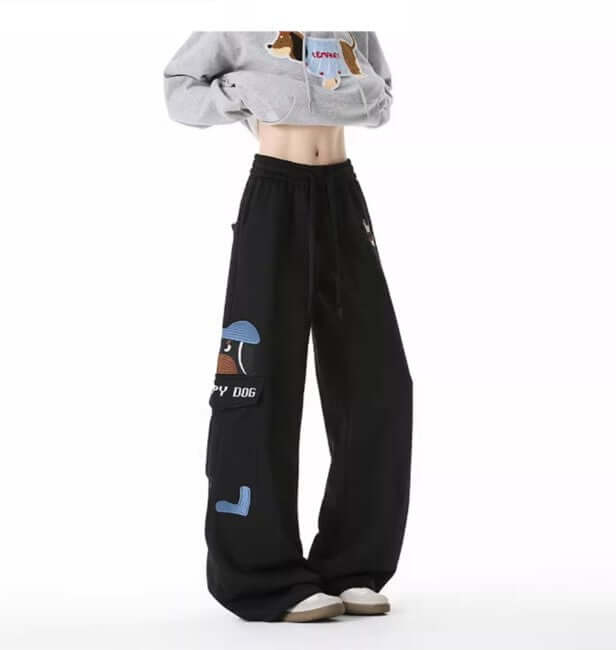 I pantaloni della tuta Grozavu con ricamo di cane combinano un carattere vintage giocoso con il comfort per tutto il...