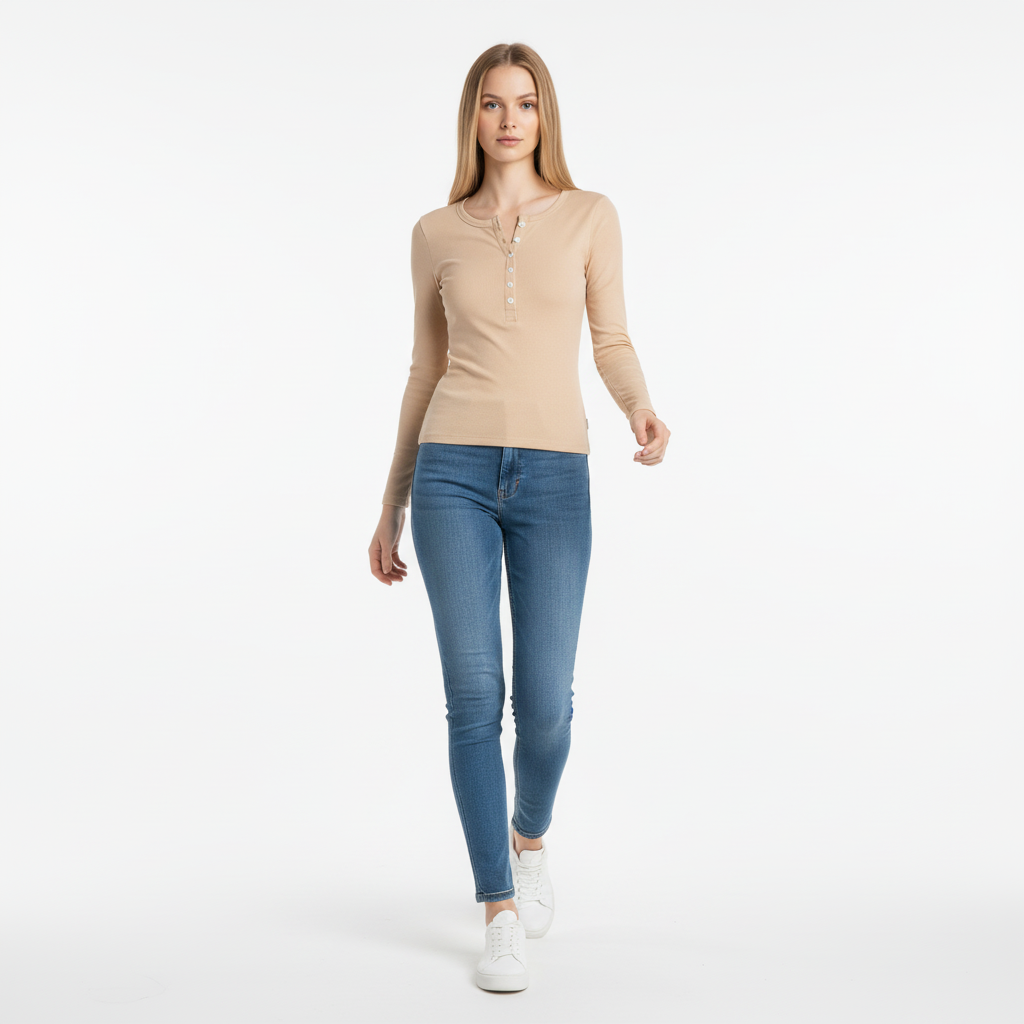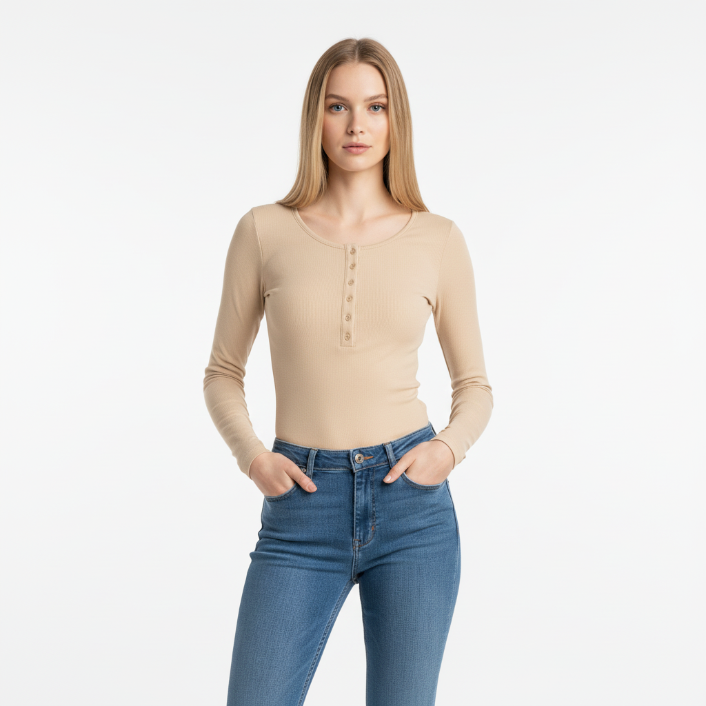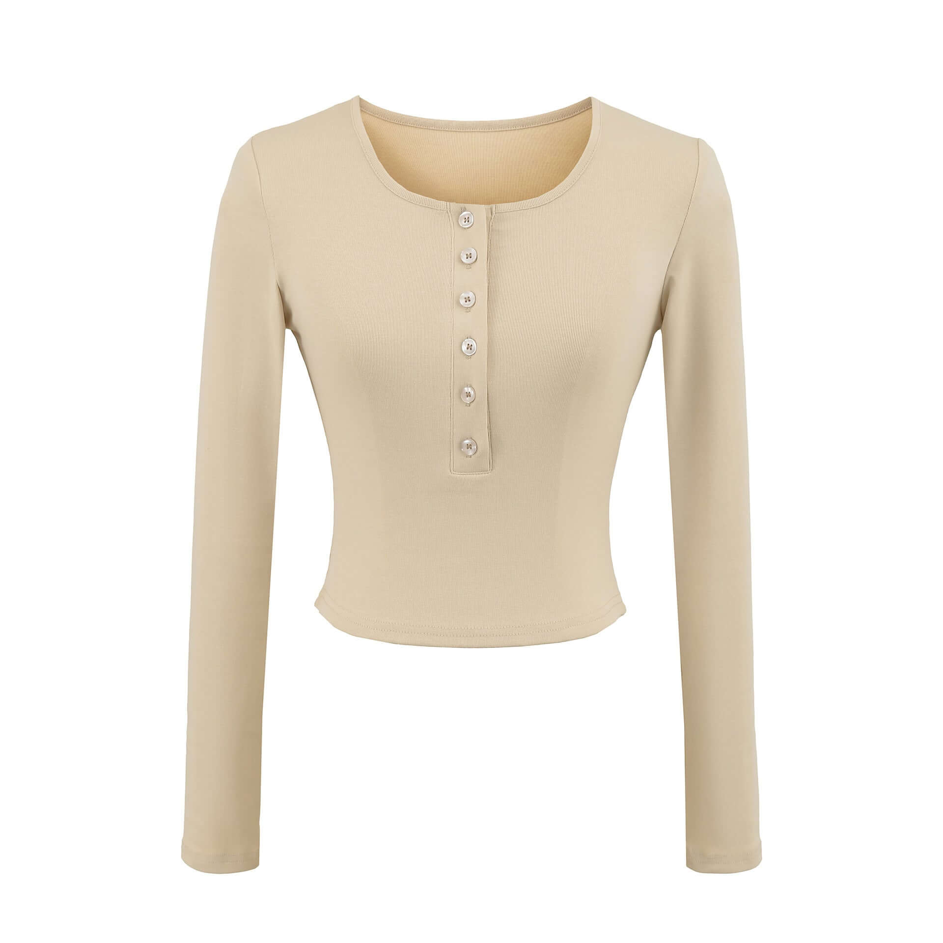 La Grozavu Maglietta a Maniche Lunghe con Collo Mezza Apertura e Scollo a V per Donne offre una silhouette elegante...