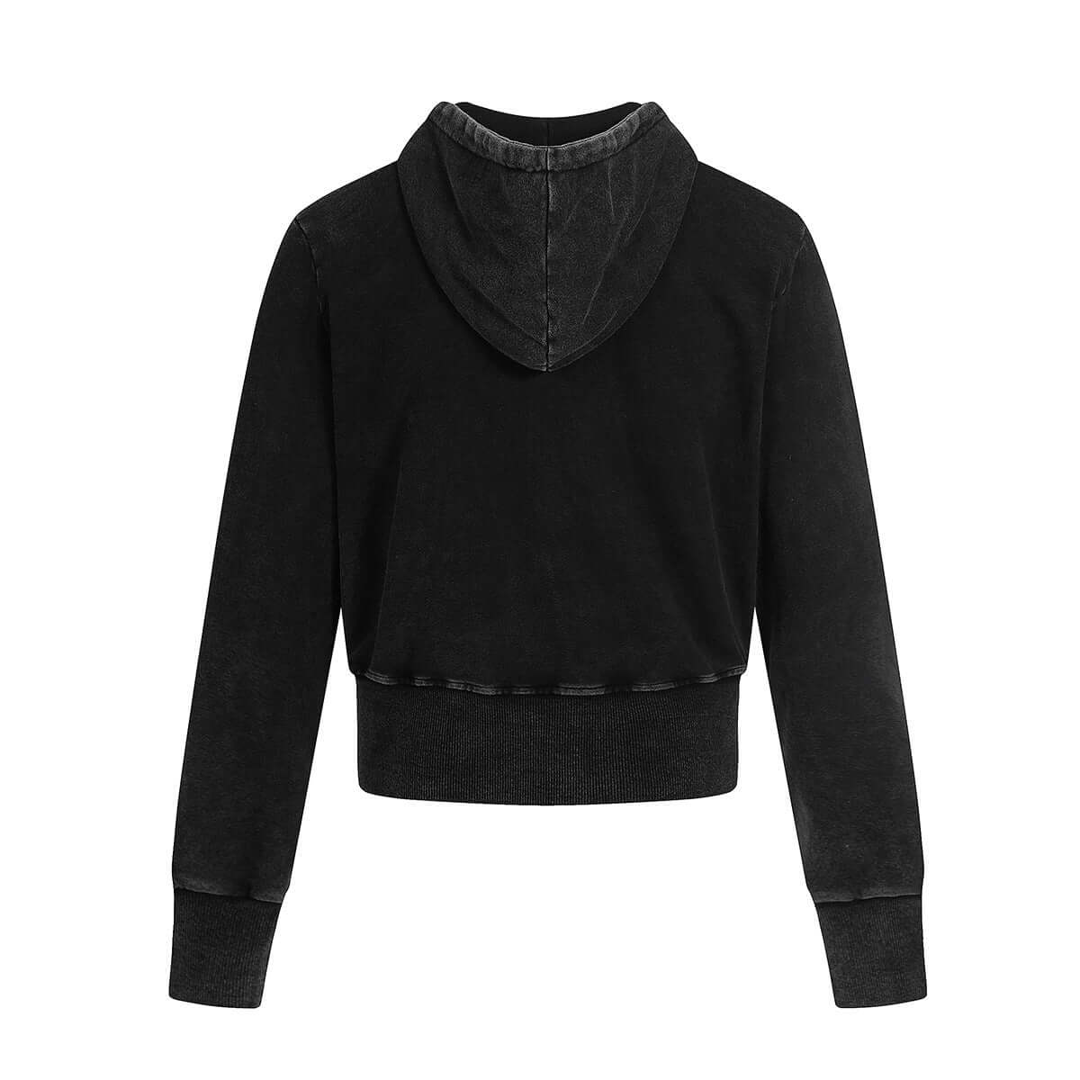 • Back view of the Washed Retro Zip Hooded Jacket – Fitted showcasing the cropped design and hood.