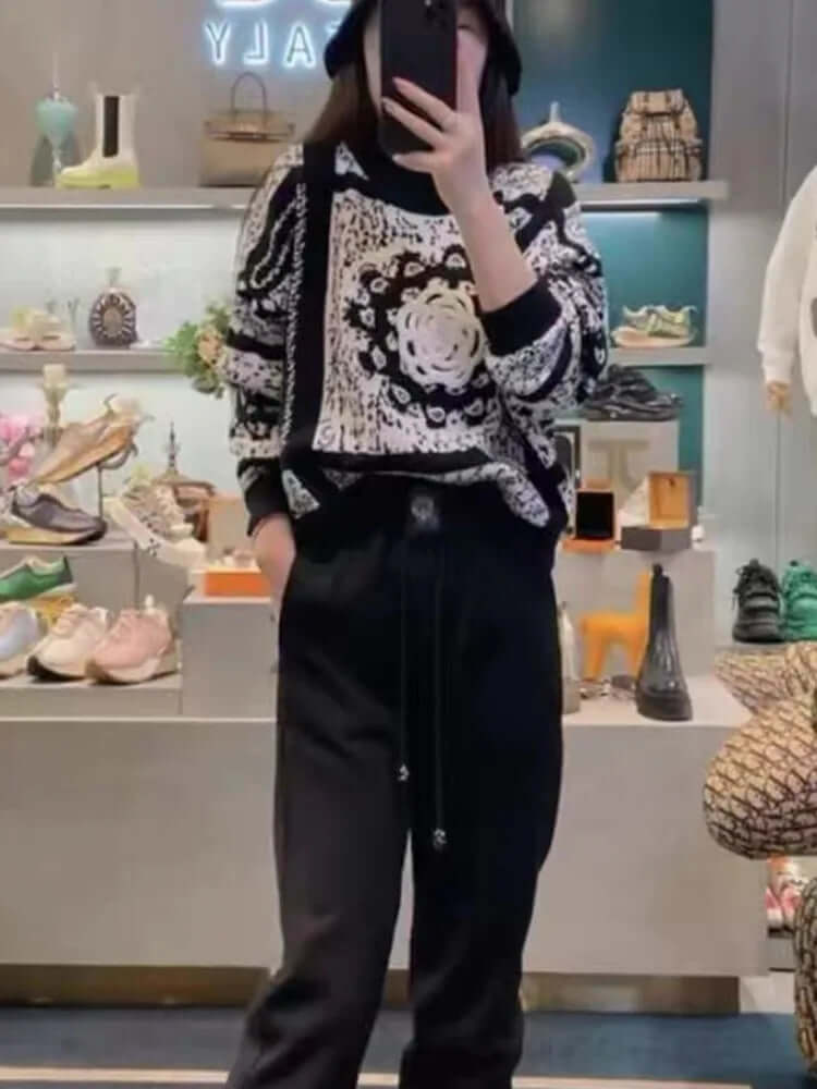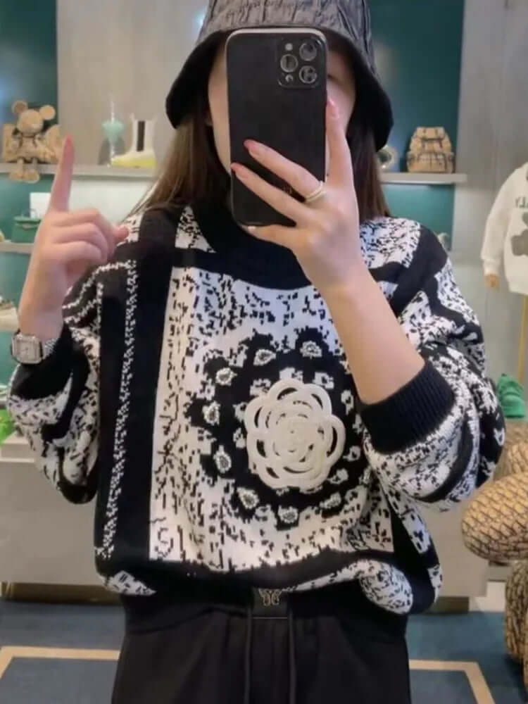 Il Grozavu Camellia Jacquard Knit Sweater è un pezzo raffinato in stile urbano progettato per donne che amano i dettagli...