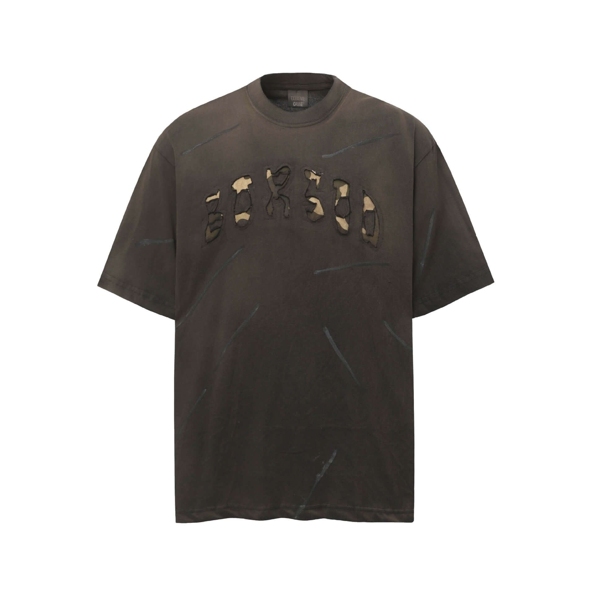 • Washed Patchwork Letter TShirt – Loose Fit featuring unique letter embroidery and relaxed fit design.