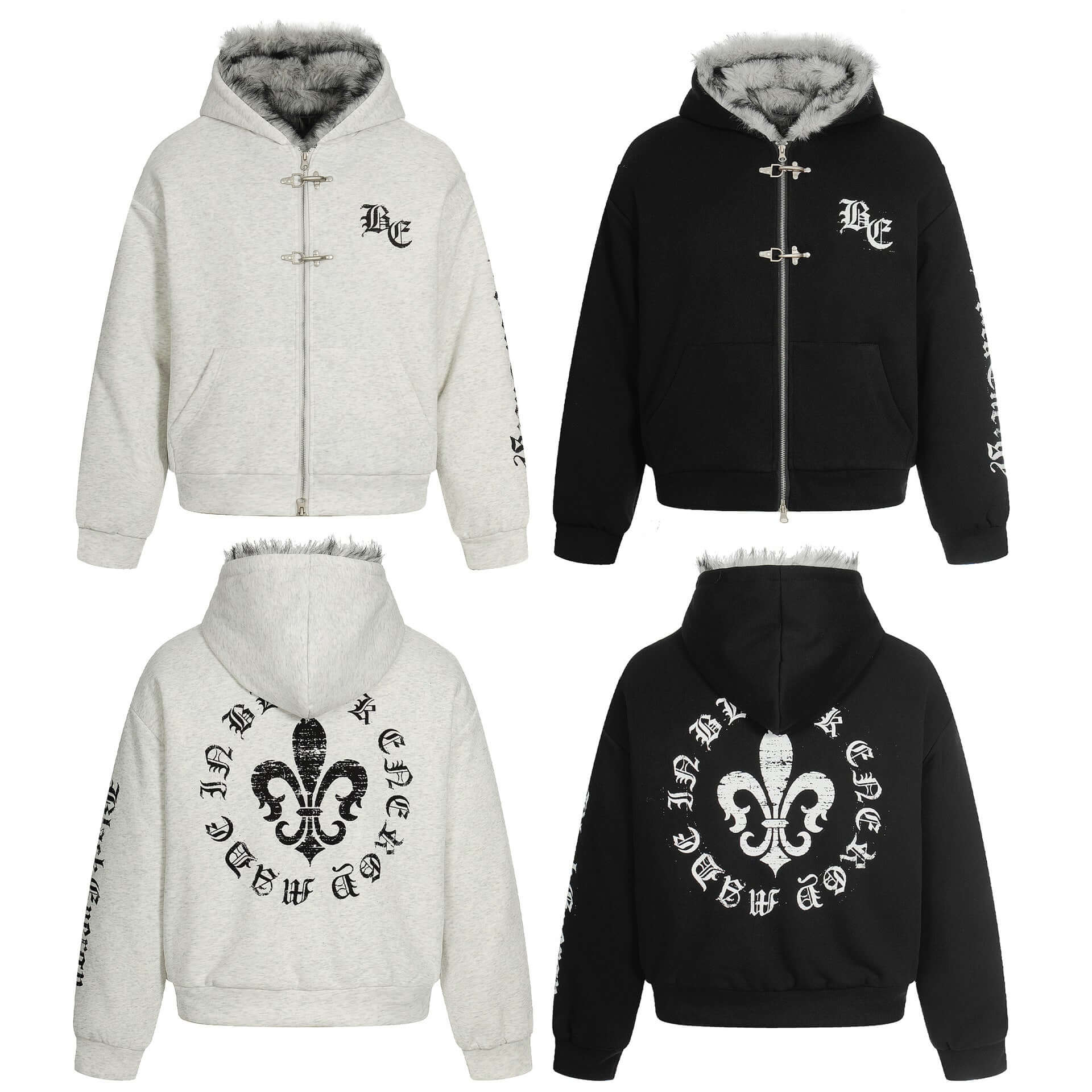 • Velvet Hooded Jacket - Loose Fit with faux fur lining and zipper front, perfect for casual comfort and streetwear style.
