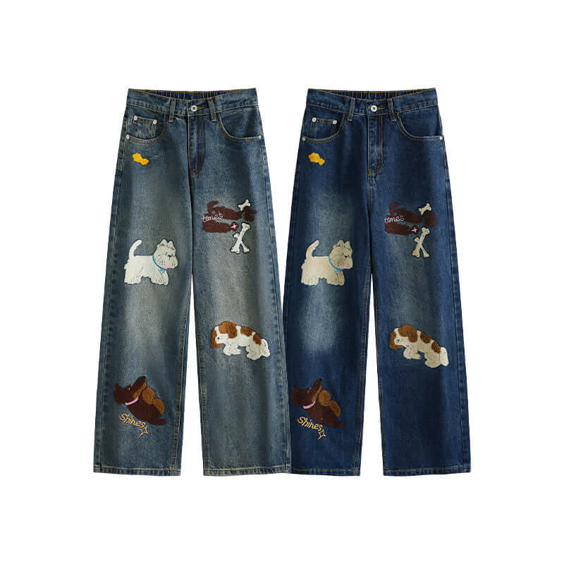I jeans ricamati a patchwork Grozavu Puppy sono progettati per uomini e donne che amano uno stile street carino con...