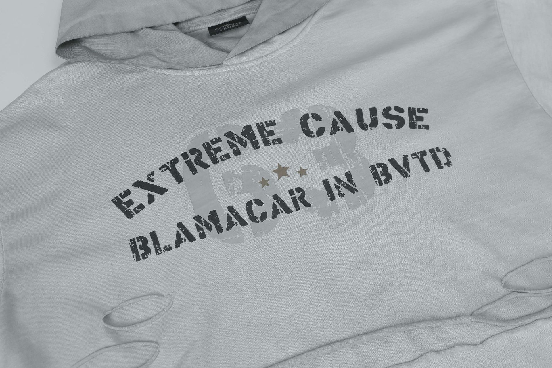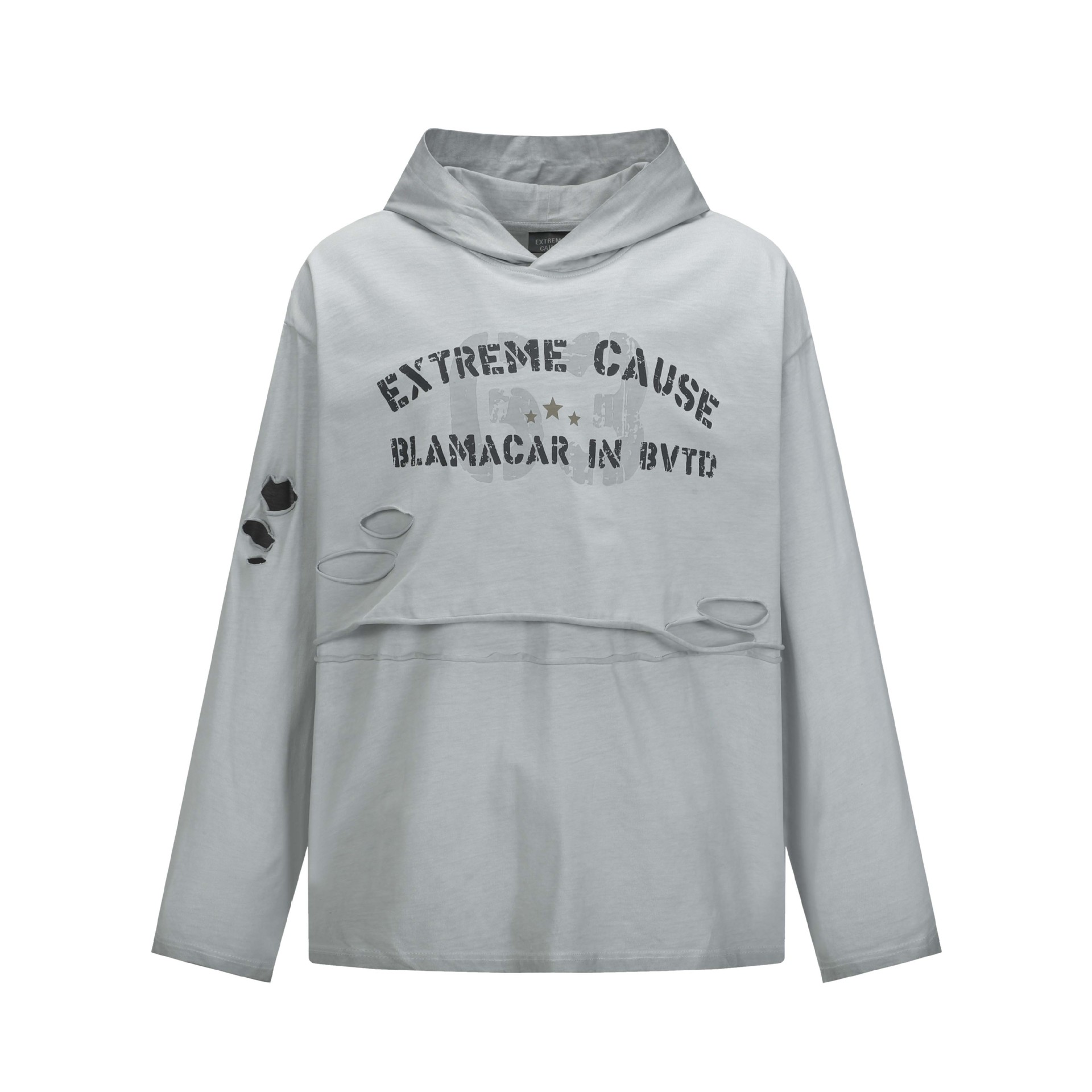 La felpa con cappuccio Grozavu Retro Washed Distressed Hole Letter Print unisce stile high street e comfort casual. Caratterizzata da...