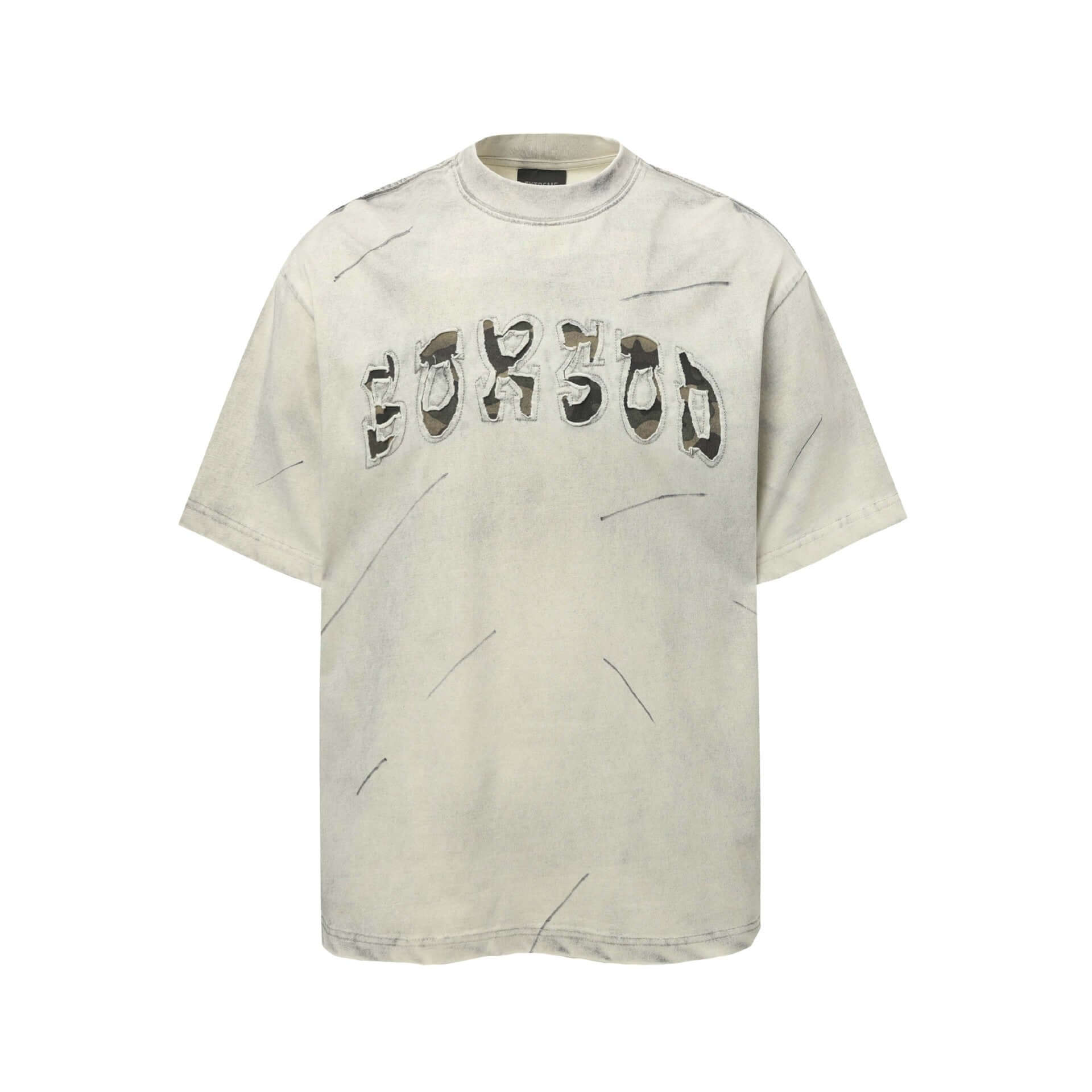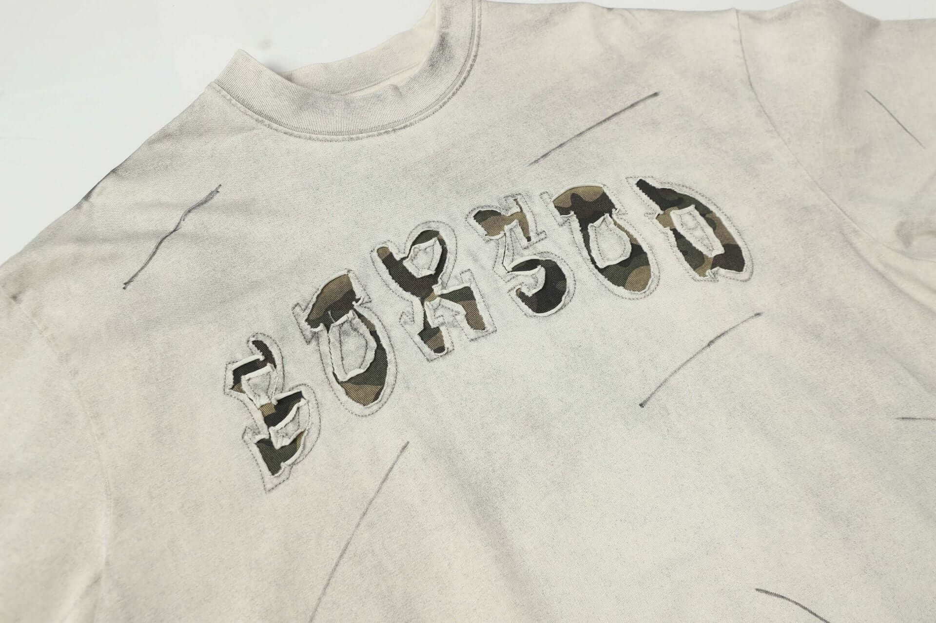 T-Shirt Lettera Patchwork Lavata – Vestibilità Ampia