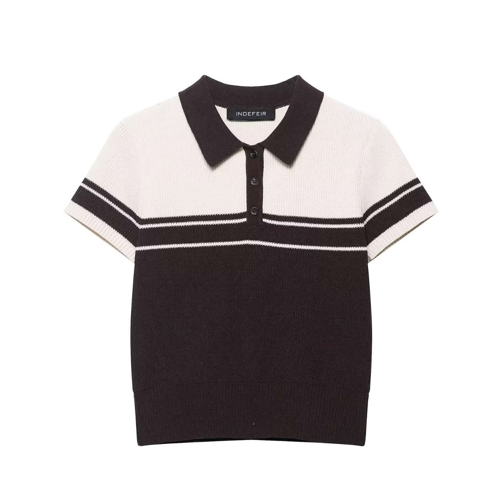Grozavu Ribbed Stripe Knit Polo Top este conceput pentru femeile care iubesc stilul de stradă european și american curat, cu...