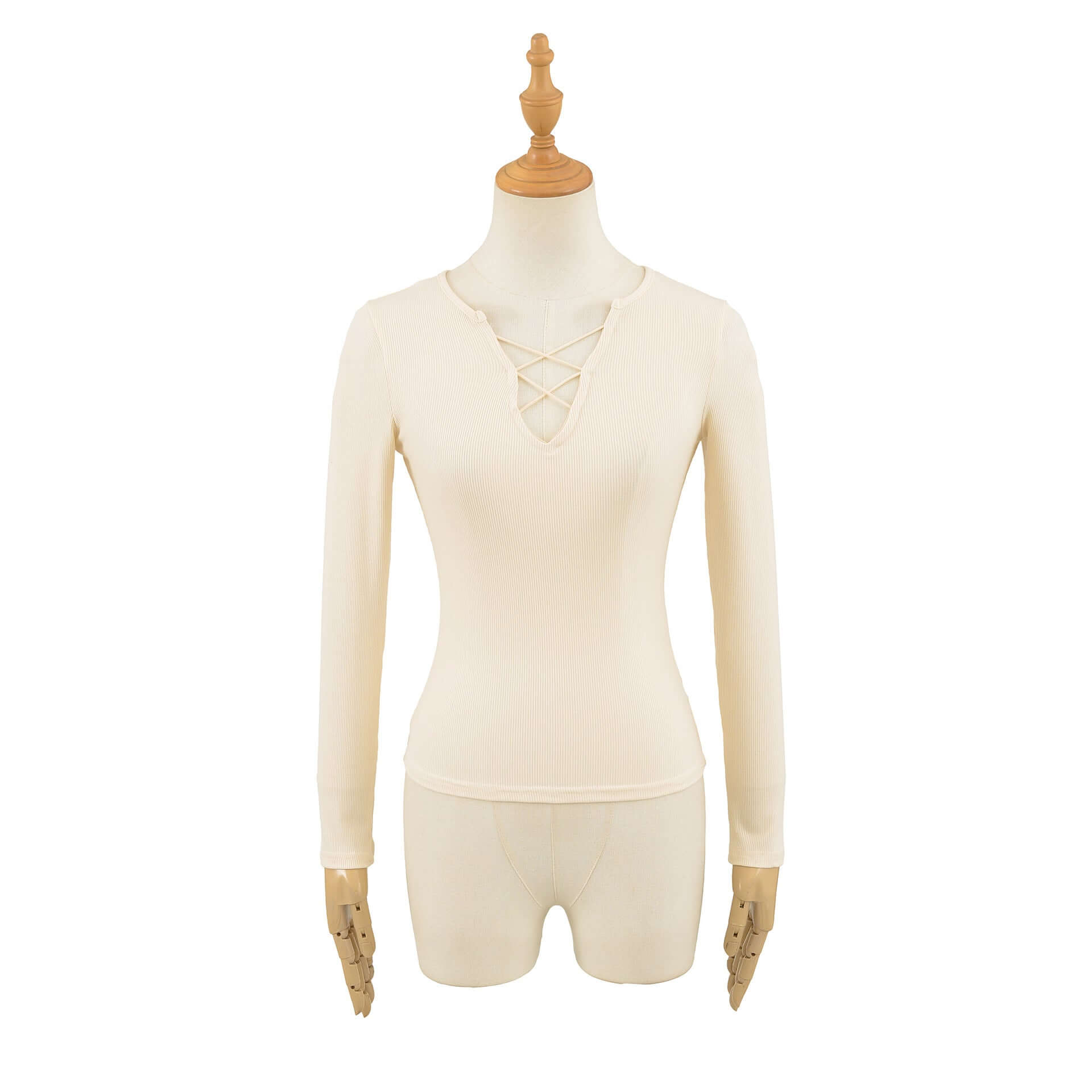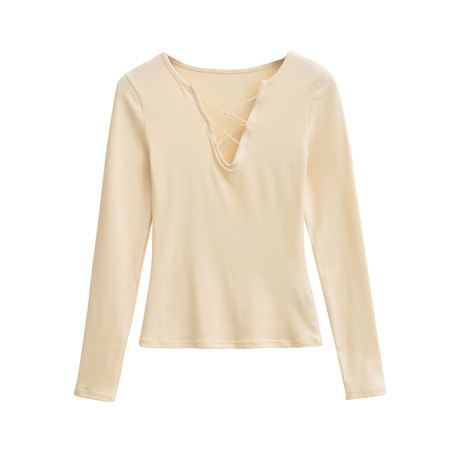 Top cu mânecă lungă, de tip slim fit, cu decolteu în V și bretele