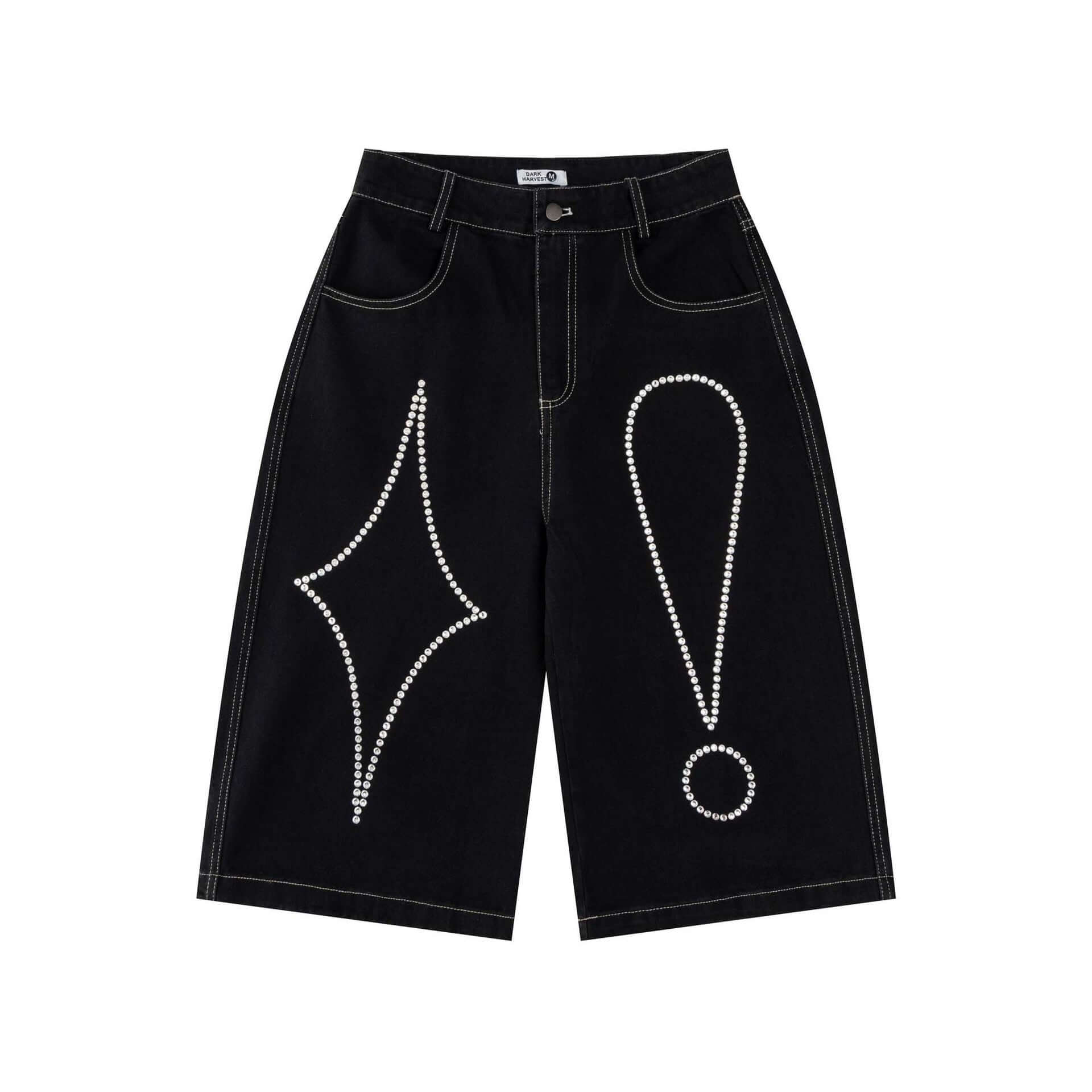 Îmbunătățește-ți prezența urbană cu Shorts Denim cu Simbol din Rhinestone de la Grozavu, o piatră de temelie a celei mai...