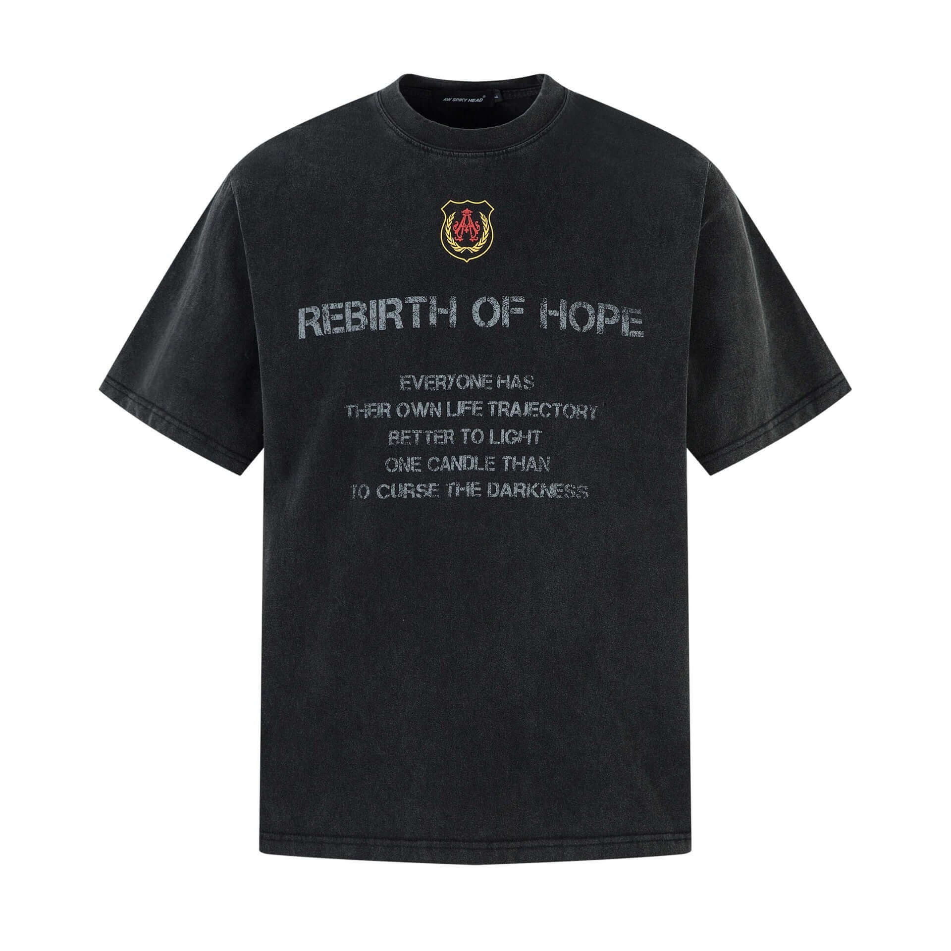 Tricou Retro Spălat cu Insignă și Litere – Croială Largă