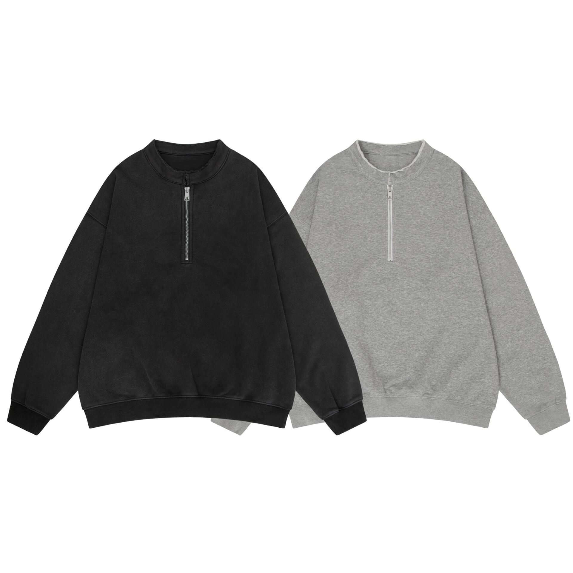 Washed Stand Collar Zipper Hoodie